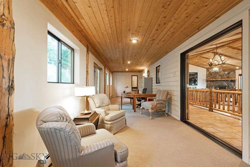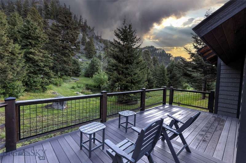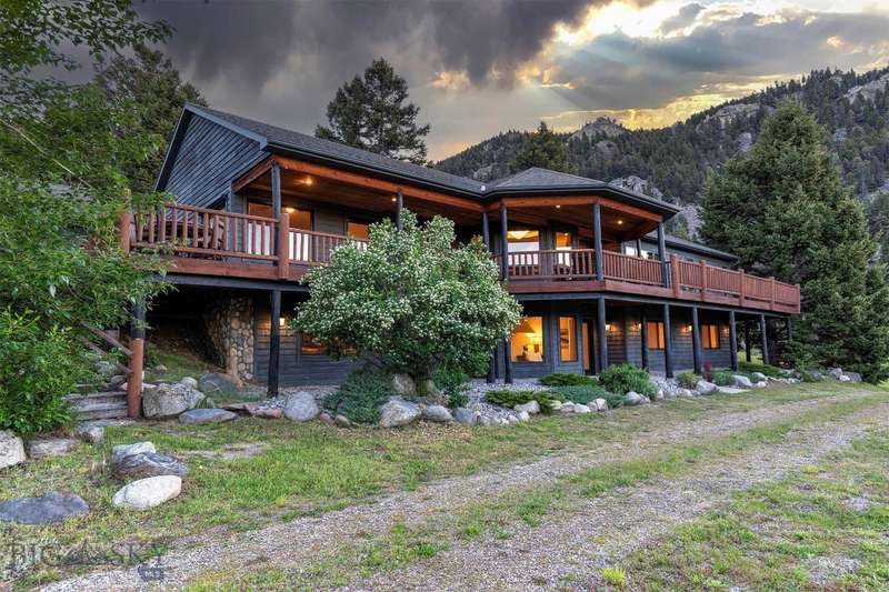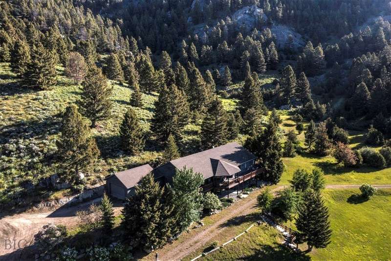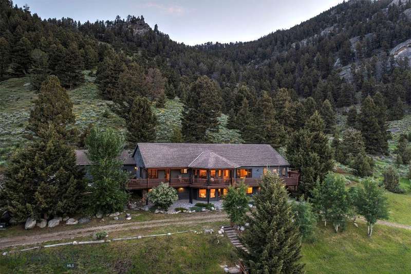 Escape to your own secluded retreat, nestled on 34 private acres in the Tobacco Root Mountains. This remarkable estate overlooks its own pond and features a spacious 4 BR/2 full baths/2 half bath, 4518 SF home with two levels. This attractive home accommodates main level living with a spacious primary suite, kitchen and living areas, laundry and garage all on the main level. The walk-out lower level is bright and cheerful with three bedrooms and a family room, and cedar lined storage room. The rooms are large with many ways to access the outdoor spaces and views. Near the main home is a barn with a 2BR apartment with loft that can sleep six adults with a large kitchen that is a great staging area for caterers. This self-sufficient apartment has its own patio and two decks, and 2 car garage with workshop, and is tucked in the trees. Nature enthusiasts will appreciate the property's border with public land, offering endless outdoor recreational opportunities. Renowned artist, Larry Zabel, created his western masterpieces in the artist studio that still sits on-site next to cascading water and a serene pond. After a long day, hike or take an ATV to your own private viewing area overlooking the dramatic, white water of North Meadow Creek. This hidden outdoor patio has views of the Madison Range and is sheltered by giant granite boulders. This legacy property has two entrances, water rights, is nestled into its own private forest with two ponds and amazing topography. Bozeman, Montana is just over an hour away.