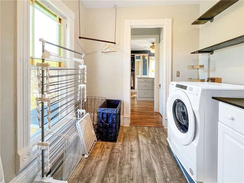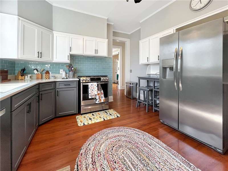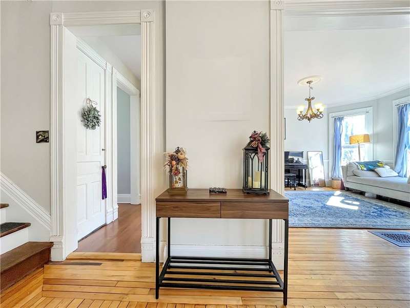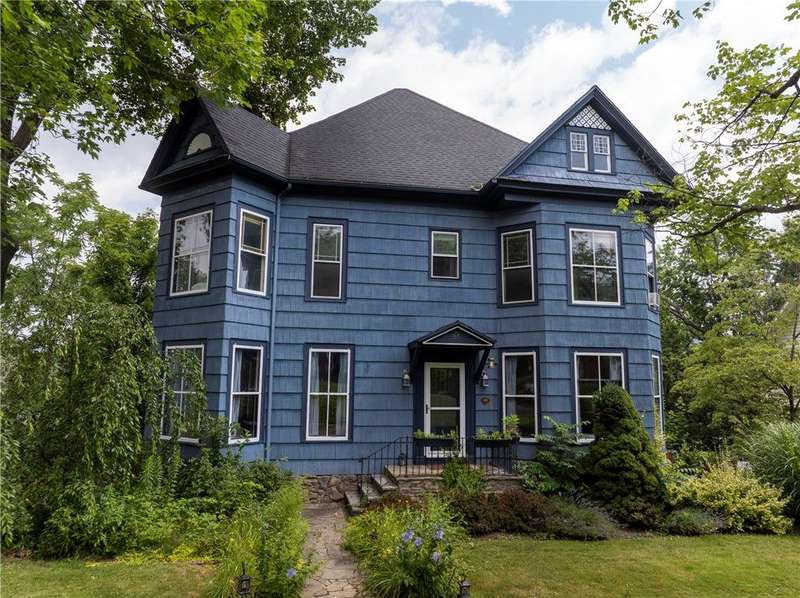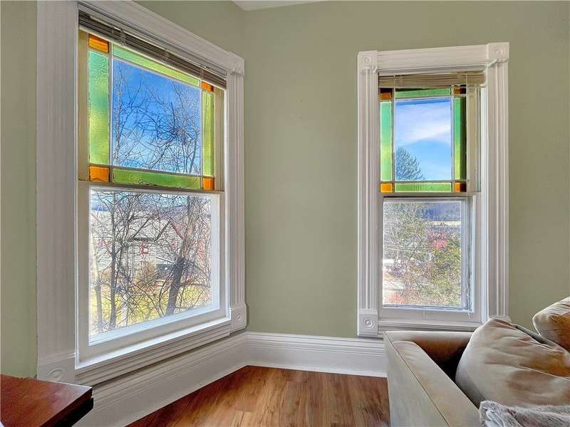 Welcome to the Historic Southside of Corning, where classic 1900s architecture meets modern living. Situated on nearly a quarter of an acre, 65 E Third Street seamlessly blends historical charm with contemporary updates. The main floor boasts an expansive living room, a versatile office or pantry, a formal dining room, and a conveniently located half bathroom, all offering generous space for entertaining and storage. The kitchen, beautifully updated in 2021, features quartz countertops, a stylish new backsplash, a second bar-style kitchen sink, wine cooler, and a dishwasher, providing both functionality and elegance. Adjacent to the kitchen is a screened-in porch, ideal for enjoying sunny days and the tranquil surroundings. Upstairs, you will find four spacious bedrooms, each with ample closet space, as well as two full bathrooms. Several bedrooms are adorned with original stained-glass accents, adding a unique touch to the home's character. Bedroom #4, currently a walk-in closet, could easily be restored to a functional bedroom if needed. Laminate flooring was installed in the bedrooms to preserve the integrity of the original hardwood floors, and one of the bathrooms has been fully renovated. Additionally, the second floor offers a large laundry room complete with built-in shelves and closet space, enhancing the home's convenience and storage options. With nearly 2,700 square feet of living space, numerous closets, and an array of thoughtful details, this home is ideal for those seeking both ample living space and a connection to Corning's rich local history.