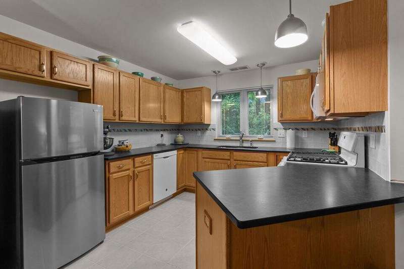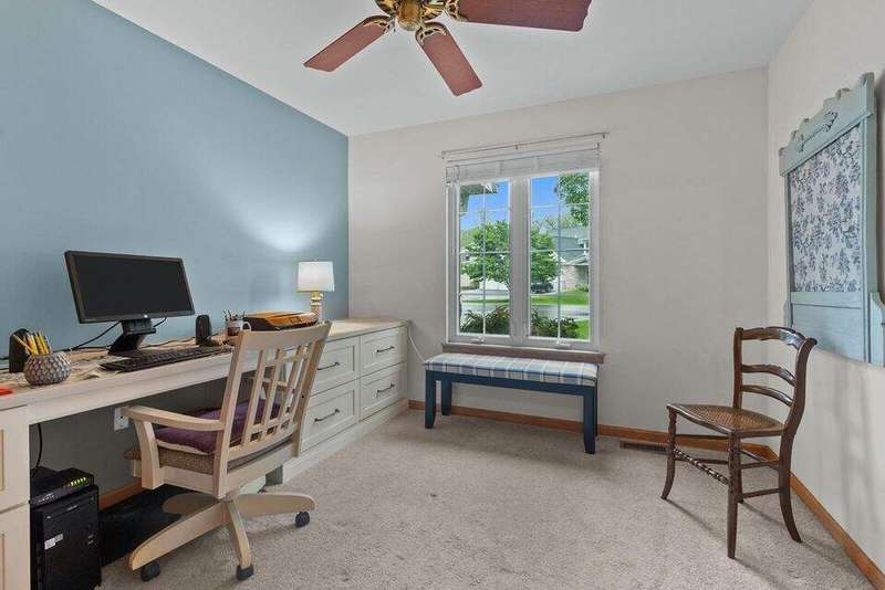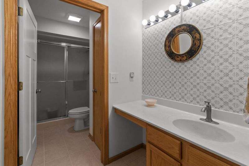 Convenient first floor, 2 bedroom & 2 bath condominium in Williams Bay. This is a well situated home in the Bayside Pointe Association located just blocks to the beach, boat launch, Park & Village Center. This condo offers a peaceful atmosphere for your family and guests. The open concept layout features a cozy living room, perfect for gatherings or quiet nights in. Enjoy morning coffee in the adjoining dining area, or on your screened in porch which looks out into a dense wooded area. Kitchen offers tons of storage. Retreat to the primary suite, complete with an en-suite bathroom featuring a walk-in shower. Additional bedroom is perfect for family or guests, and has built-ins for a home office. Attached garage unit, short walk to pool and in-unit laundry.Some photos virtually staged