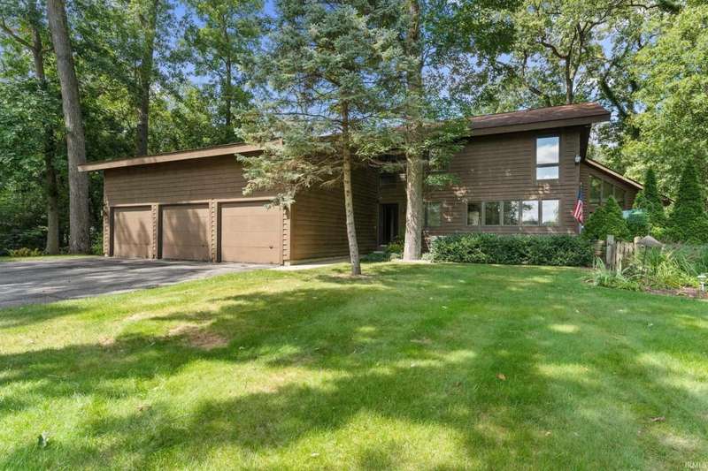 Prime Granger location for Residential or for Potential "O" Office or "B" Business County Zoning. This well maintained, beautifully landscaped, Contemporary style, 1-Owner, Open concept designed by Korbuly Architects boasts 2.12 Acres, 4 Bedrooms, 2 Full Baths, 2 half baths, 3 car garage, floor to ceiling windows, 2 entrances (SR 23 and Brick Rd), Penn-Harris-Madison schools, close to the Indiana Toll Road and Medical-Hospital facilities. Updates include: New Furnace 4.15.24, Water Softener 2024, New Well pump 9.16.24 and recent Septic Pumped(1000 gal) 8.26.25 & every 3 years. This is truly a want to see home & property.