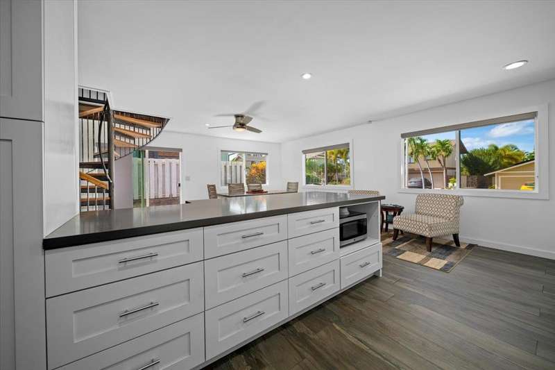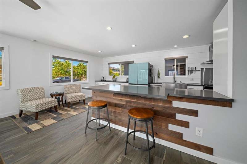 Nestled in one of South Maui's more desirable neighborhoods, this beautifully maintained Kihei home offers relaxed island living just minutes from the beach. Located at the end of the street, the property offers privacy and the gentle trades winds that define Maui's coastal lifestyle. The two story floor plan provides spacious, open living areas, filled with natural light. A generous kitchen and dining area flow seamlessly to the living area. The home's five bedroom and four baths, (2,142 sq ft) includes a primary suite on each floor. The detached one bedroom Ohana (520 sq ft) offers additional flexibility for ideal guest accommodations, home office or rental income. This is a must see.