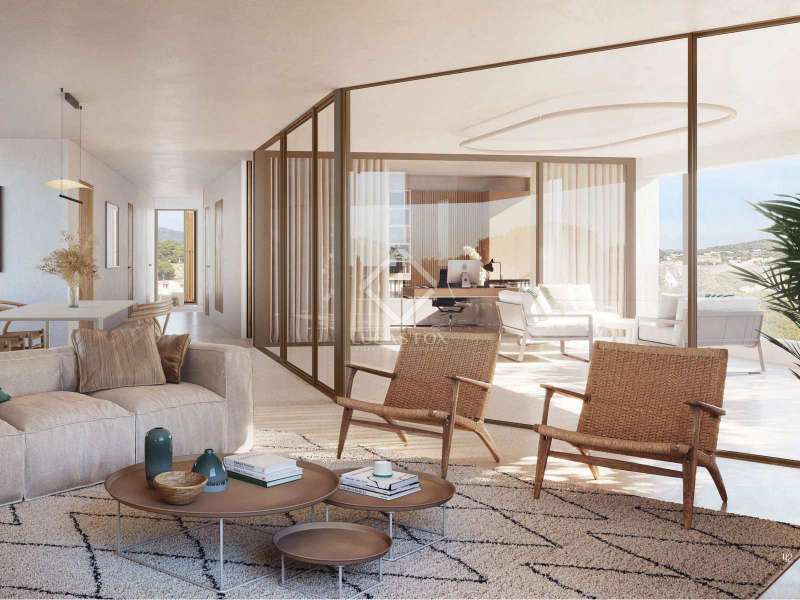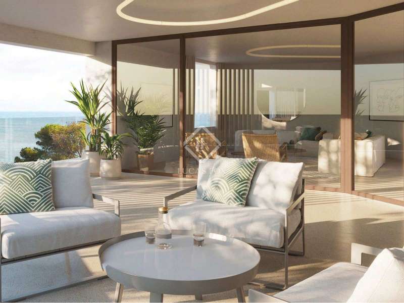 Sa Caleta is made up of only 12 apartments in the centre of the Costa Brava — elite tourist town — S'Agaró. The complex is made up of 3 buildings with 4 floors each, where each apartment occupies the entire floor. The windows of each property offer a panoramic view over one of the most beautiful beaches in Spain — Sant Pol. Architectural concept and interior design are developed by FGA Arquitectes (Girona) and Jaime Prous Architects (Barcelona).