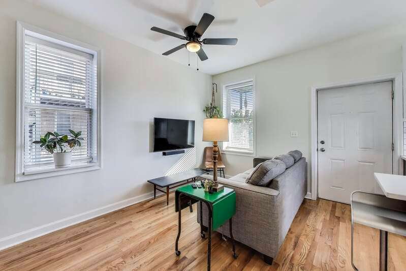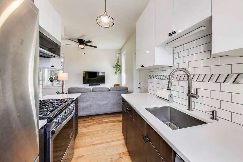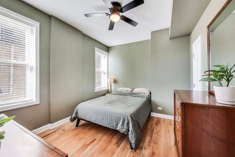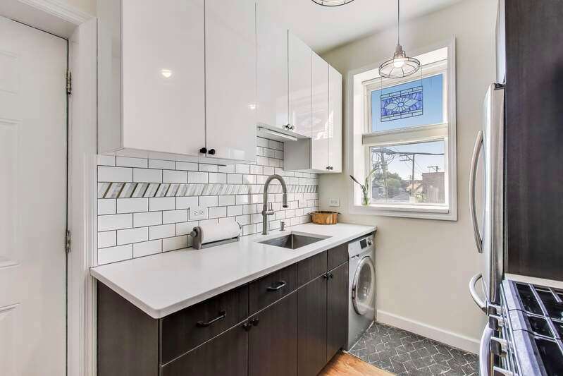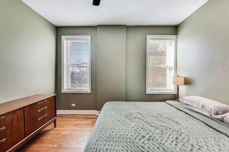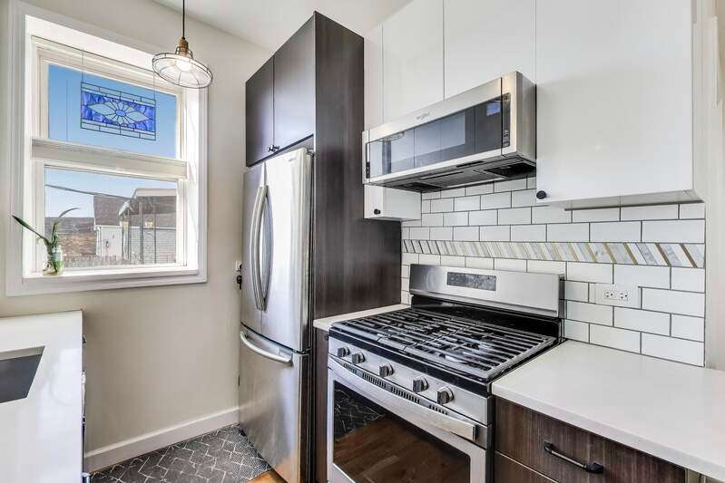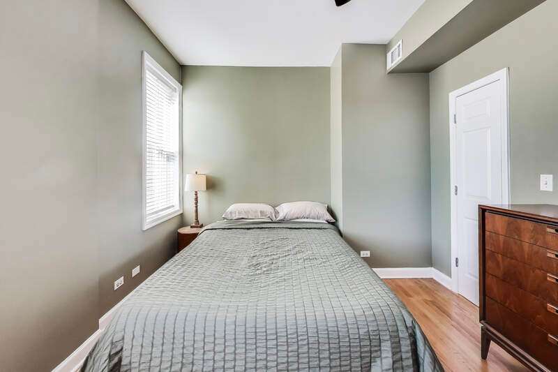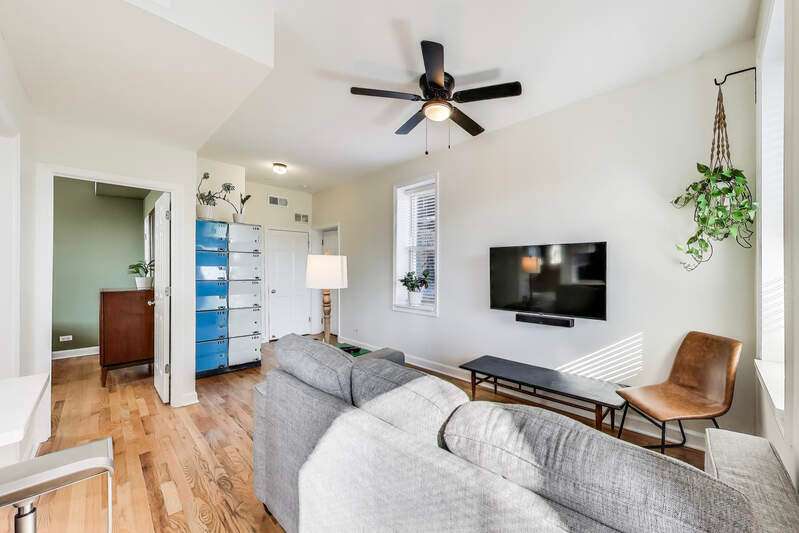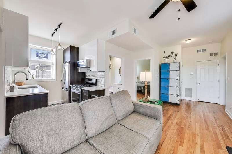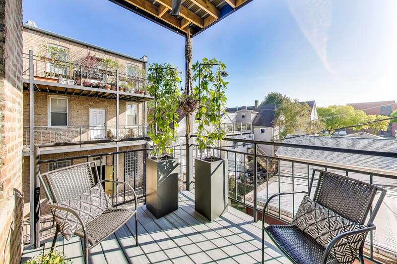 Stylish 1-Bedroom Condo with Balcony & Deck in Pilsen Move-in-ready 1 bed, 1 bath condo on the 2nd floor of a boutique building in Chicago's vibrant Pilsen neighborhood. This bright and thoughtfully designed home features refinished hardwood floors, fresh paint, and an open, airy layout with abundant natural light. The living room flows seamlessly into the beautifully updated galley kitchen, showcasing two-tone cabinetry, quartz countertops, tile backsplash, stainless steel appliances, and in-unit laundry - a rare convenience. The spacious bedroom offers a calming, modern color palette and ample closet space, while the updated bathroom features a sleek vanity, matte black fixtures, and a tiled shower/tub combo. Enjoy two private outdoor spaces - a cozy balcony and a larger deck perfect for entertaining or relaxing. Located in the heart of Pilsen, this home offers easy access to popular restaurants, cafes, art galleries, parks, public transit, and the I-55 expressway.