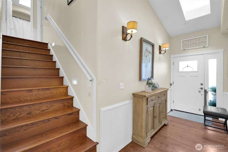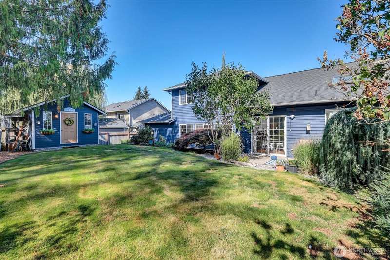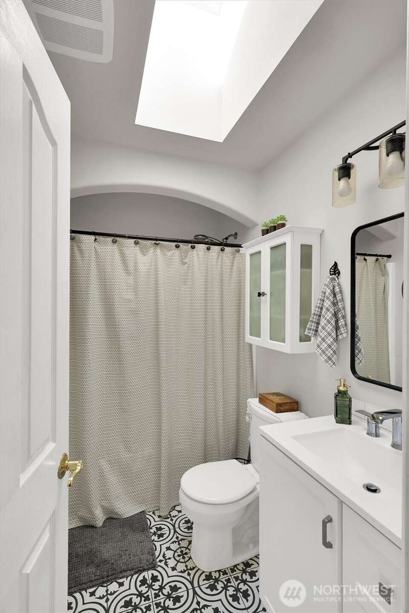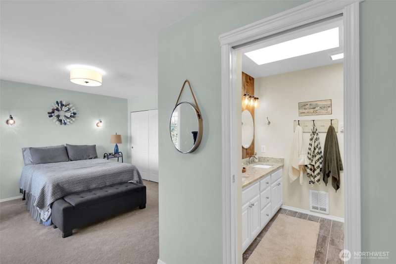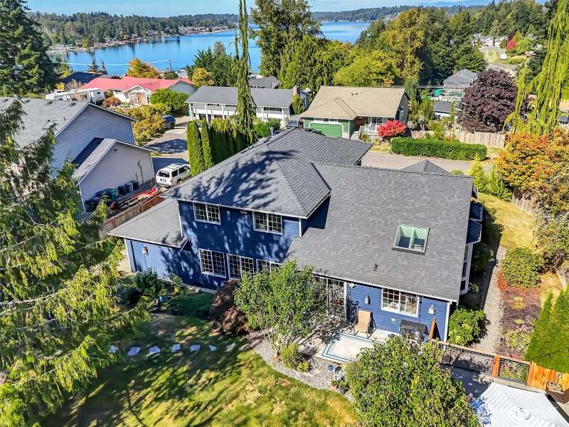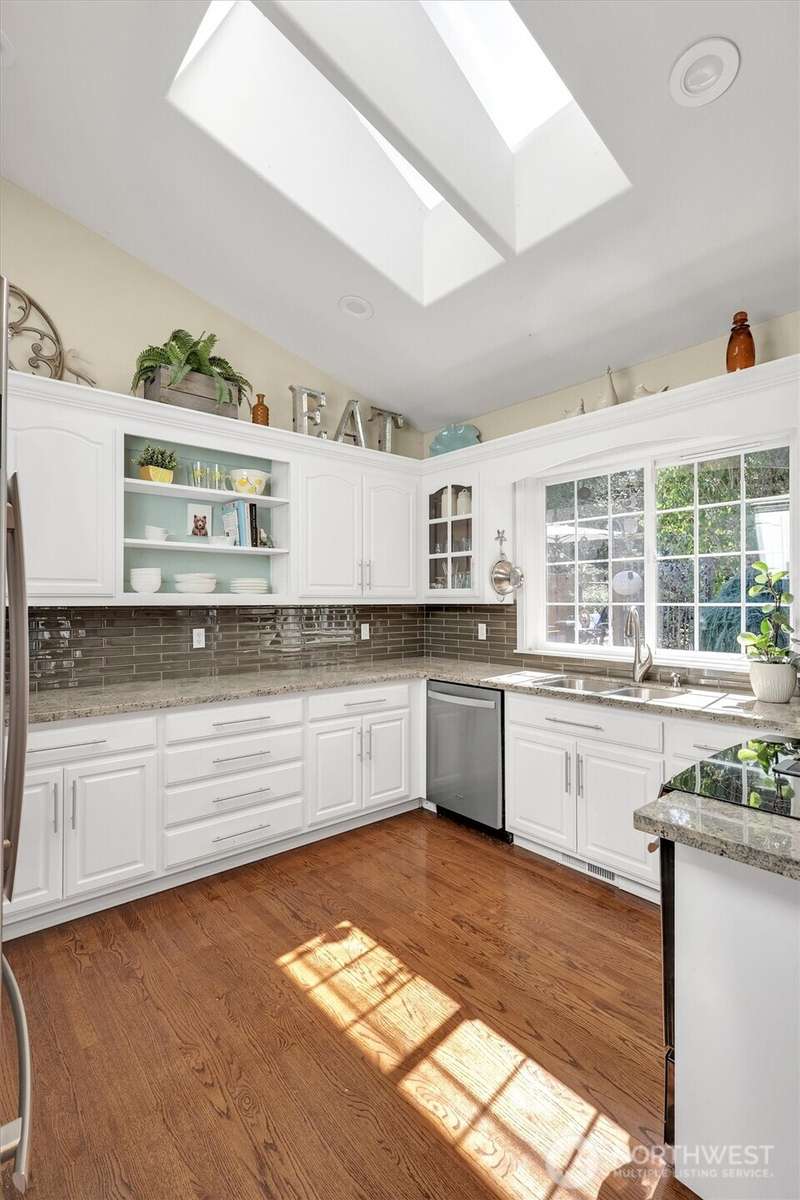 [CHARMING + BRIGHT] This home blends updates + character on HUGE .26-acre lot. Spacious formal living room with cozy fireplace welcomes your guests. Skylights brighten the entry and kitchen, letting LIGHT + ENERGY flow throughout. The lower-level bedroom is ideal for guests or multi-generational living. Upstairs, the primary bedroom features peekaboo LAKE VIEWS + spa-like bathroom with skylight. Tucked on a quiet dead-end street backing to a GREENBELT, it offers the freedom of NO HOA + RV parking + oversized 3-CAR tandem garage + a yard designed for LIVING: deck + patio + fire pit + grass + charming shed with power for your office, art or play. This is where your friends + pups all have room to thrive. [NOT YOUR COOKIE-CUTTER HOME]