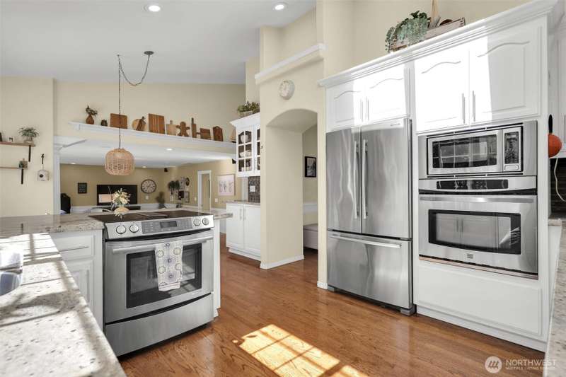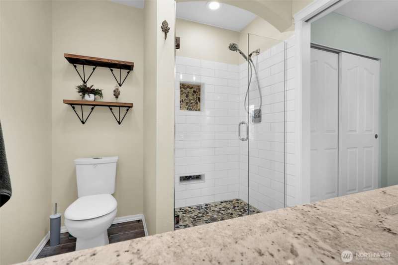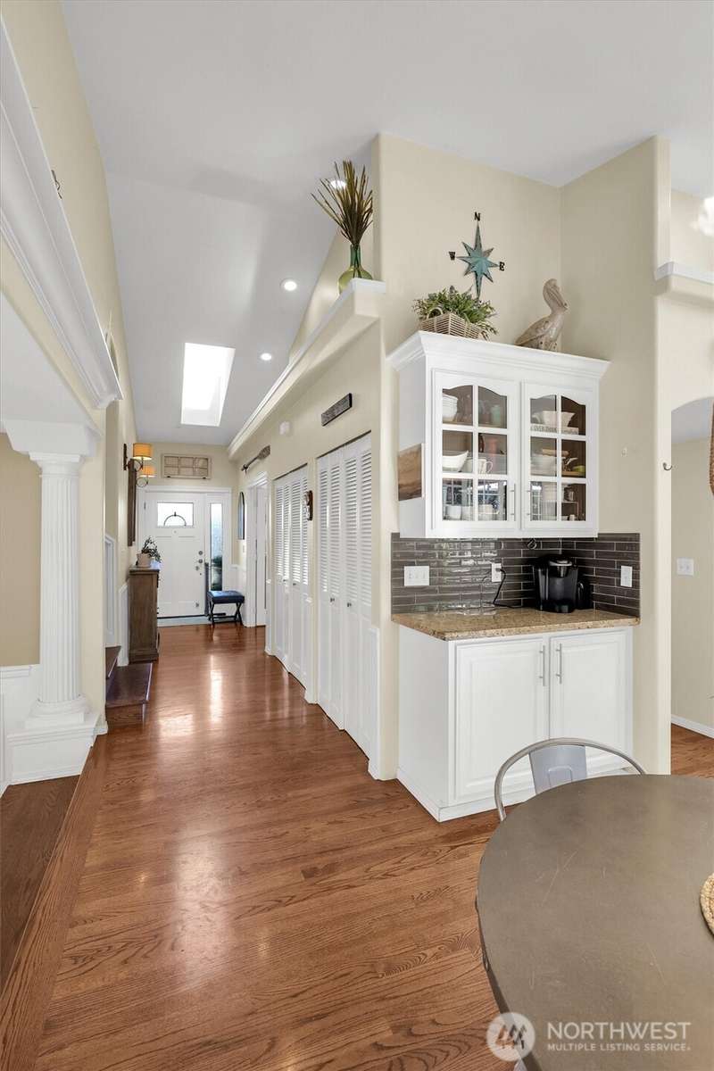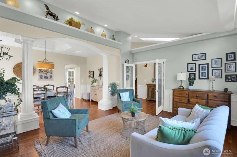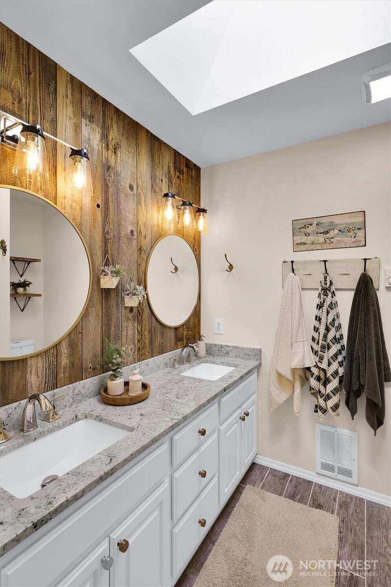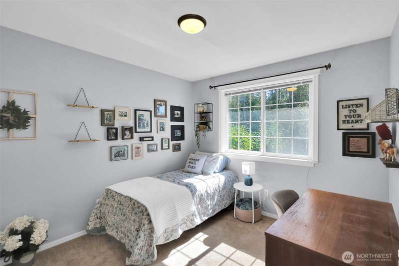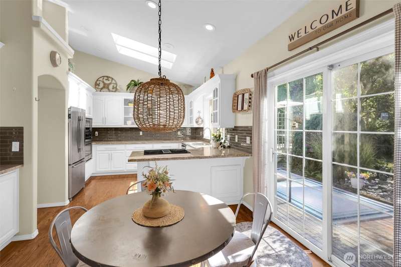 [CHARMING + BRIGHT] This home blends updates + character on HUGE .26-acre lot. Spacious formal living room with cozy fireplace welcomes your guests. Skylights brighten the entry and kitchen, letting LIGHT + ENERGY flow throughout. The lower-level bedroom is ideal for guests or multi-generational living. Upstairs, the primary bedroom features peekaboo LAKE VIEWS + spa-like bathroom with skylight. Tucked on a quiet dead-end street backing to a GREENBELT, it offers the freedom of NO HOA + RV parking + oversized 3-CAR tandem garage + a yard designed for LIVING: deck + patio + fire pit + grass + charming shed with power for your office, art or play. This is where your friends + pups all have room to thrive. [NOT YOUR COOKIE-CUTTER HOME]
