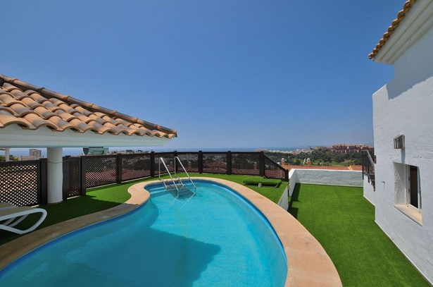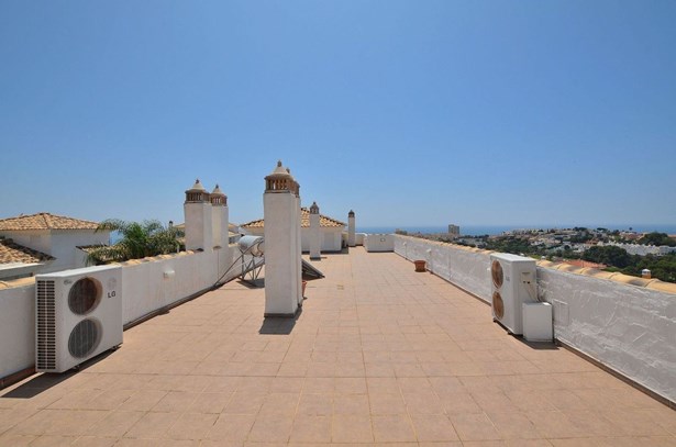We present a truly one-of-a-kind luxury penthouse in Torrequebrada — a unique property on the market, the result of joining two penthouses into one spectacular residence. With 227 m² of interior space, the home features 4 bedrooms, 2 full bathrooms, and 1 guest toilet, with a stylish open-plan kitchen connected to a spacious living room. All in excellent condition and finished to a high standard. The highlight of this property is its massive 413 m² of terraces, including a private solarium, swimming pool, outdoor kitchen with barbecue, and multiple areas to relax or entertain — all with breathtaking panoramic views of the sea, golf course, and mountains. The property includes 4 private parking spaces at the entrance of the gated community, lift access, solar panels for hot water, and access to communal areas with a swimming pool, gardens, and a paddle tennis court. A dream home for those seeking a unique lifestyle on the Costa del Sol.