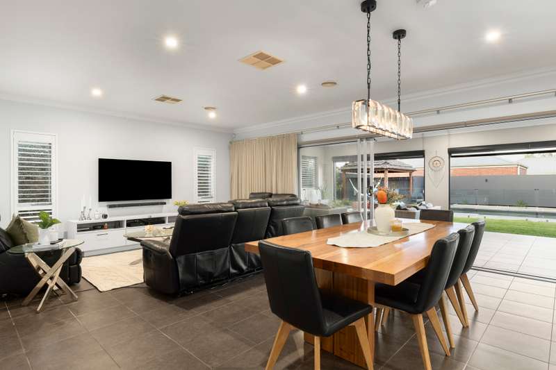 Positioned in a quiet, tightly held court on Werribee's sought-after South Side, this exceptional family residence delivers the ultimate blend of modern design, generous proportions and premium outdoor entertaining. Set on an impressive 963m² (approx.), this home offers a lifestyle rarely available and impossible to ignore. From the moment you step inside, the quality and scale are undeniable. A contemporary layout flows through multiple living zones, including a dedicated theatre room perfect for movie nights and a separate home office ideal for those working from home. The ultra-modern kitchen anchors the heart of the home with quality appliances, ample bench space, extensive cabinetry and a seamless connection to the meals and living area, all overlooking the beautifully manicured rear yard. Accommodation is abundant with five spacious bedrooms designed to cater to large families or multigenerational living. Each room enjoys space, light and comfort, making the home feel both practical and luxurious. The outdoor spaces are truly next level. Step out to an alfresco area that feels like your own private resort, complete with a built-in barbecue, a traditional wood-fired pizza oven and a cosy fireplace to enjoy all year round. The sparkling inground pool and spa are matched by a meticulously landscaped backyard that invites relaxation, celebration and everything in between. Additional features include a three car garage, contemporary finishes throughout and a floorplan designed for effortless family living. The location further enhances the appeal with easy freeway access to the Melbourne CBD or Geelong and Torquay's beaches. You're moments from Werribee Train Station, Werribee Town Centre, local shops and cafés, as well as respected schooling options including Werribee Primary and Werribee Secondary College. A rare opportunity in a premium pocket, offering space, luxury and lifestyle in one remarkable package. This is South Side living at its finest. If you would like more information or want to book an inspection, give us a call today!
