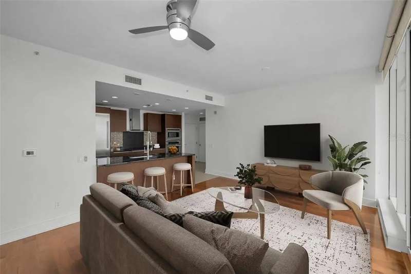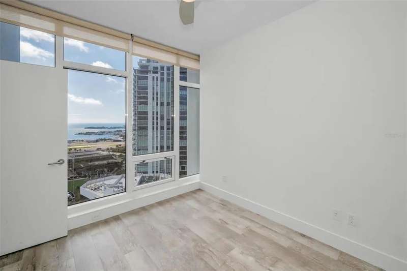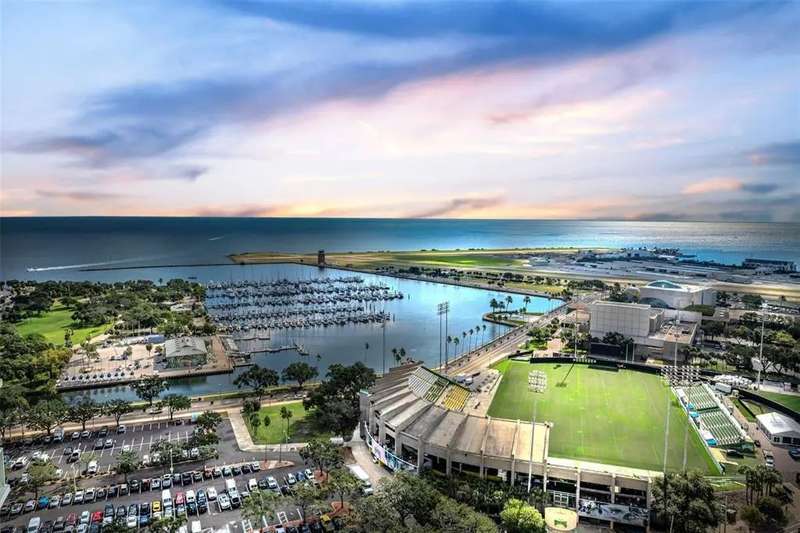 One or more photo(s) has been virtually staged. Experience elevated living in this 26th floor 2 bedroom / 2 bathroom condo showcasing sweeping southeast views of Tampa Bay and Downtown St. Petersburg from every room. Enjoy morning coffee or evening cocktails from the expansive balcony while overlooking Tampa Bay, Albert Whitted Airport and The Rowdies stadium. As you enter your front door you are welcomed by a wonderful open floor plan that features a lovely kitchen equipped with stainless steel appliances, granite countertops and a breakfast bar with floor to ceiling windows & sliders offering natural light throughout. The split floor plan is perfect for any living situation and leaves you with many options. Use the second bedroom for guests, as an office or even both! The Owner's Suite offers gorgeous views, a large shower, soaking tub, dual vanities and two closets. You will find the washer and dryer conveniently located inside the Owner's suite along with ample storage space. Additional features of this residence include two parking spaces, a climate controlled storage space and amenities galore which feels as if you are living in a resort and include a heated infinity pool, hot tub, fire pit, fitness center, two social rooms and 24 hour concierge. Located in the heart of downtown St. Pete you will find everything you need is right outside your front door with restaurants, shops, cafes, night life, markets, art galleries, grocery stores, Tampa Bay and the St Pete Pier and so much more all within easy walking distance. Don't miss this opportunity to experience a lifestyle of Downtown living from one of St Petersburg's most iconic and highly sought after luxury condo buildings!