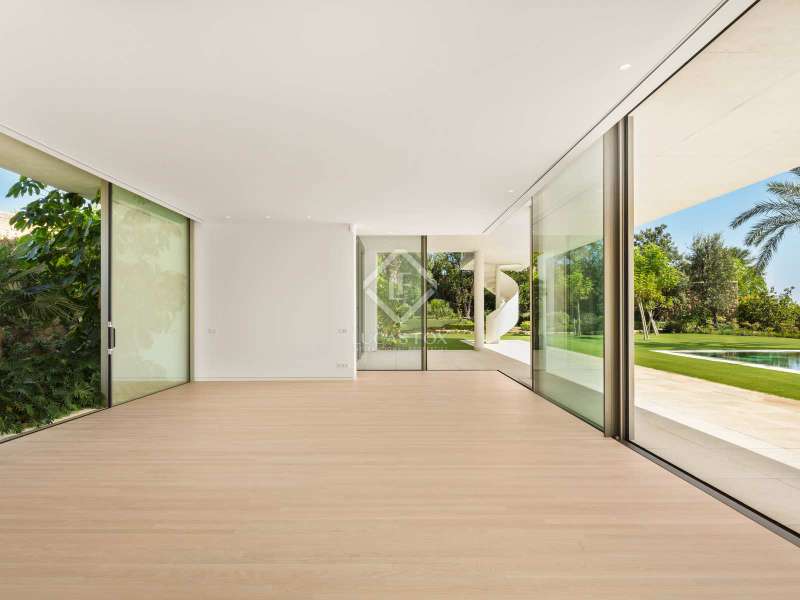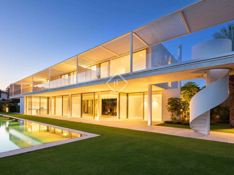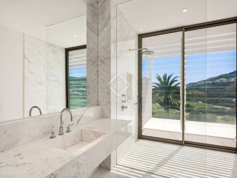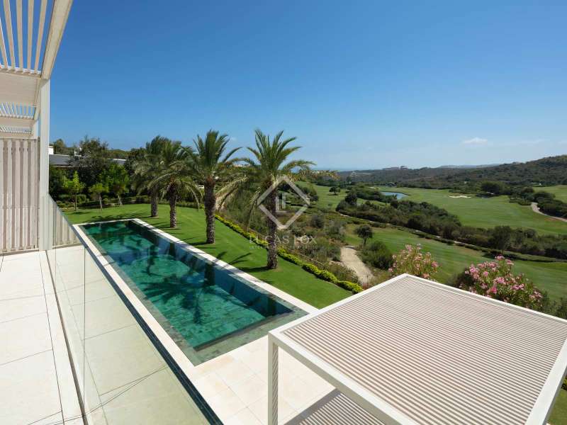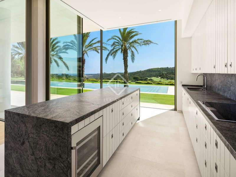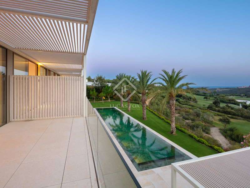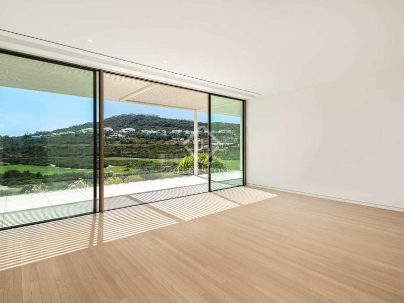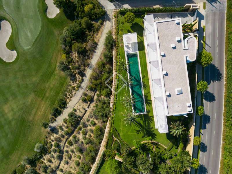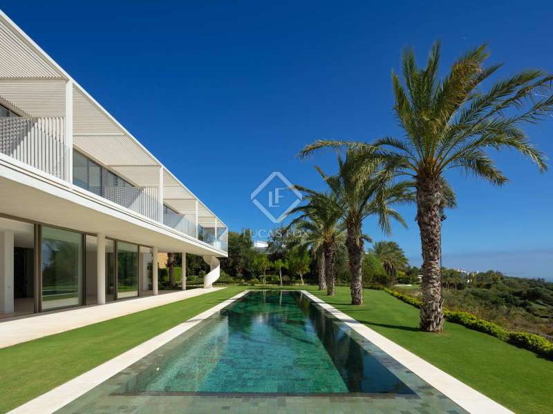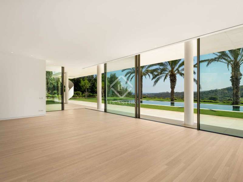 This exceptional villa is on an elevated plot within the Finca Cortesin Resort, offering views of the golf course and sea. The outdoor areas feature manicured gardens and a magnificent pool. The ground floor seamlessly connects to the garden through floor-to-ceiling glass doors. With elegant interior spaces and unique design elements, this villa exudes opulence. The bedrooms on the upper level each have private terraces, while the architectural brilliance of Vicens & Ramos is showcased throughout. As you step inside, the ground floor welcomes you with a spacious hall that leads to the heart of the home. The modern kitchen on your right, equipped with the latest appliances, opens to a dining room designed for memorable family dinners. Two living rooms in front of you whilst you step in the house, offer ample space for relaxation and entertainment, each bathed in natural light and warmth. The charm extends outdoors to a picturesque porch, a lush garden, and a sparkling swimming pool, inviting you to bask in the beauty of your private oasis. The magic continues on the first floor, accessible via a spiral staircase to the grand hallway that connects five bedrooms, each with its own en-suite bathroom for ultimate privacy and comfort. Among these, the main bedroom stands out with a walk-in wardrobe for those who cherish fashion, and the others with a built-in wardrobe, maximizing space and functionality. All five bedrooms, each offering breathtaking views, ensure that every morning starts with an inspiring panorama. Every detail contributes to the sense of luxury, comfort, and style experienced in this outstanding residence. Please contact us for further information.