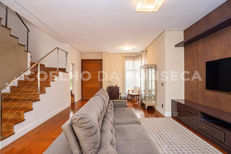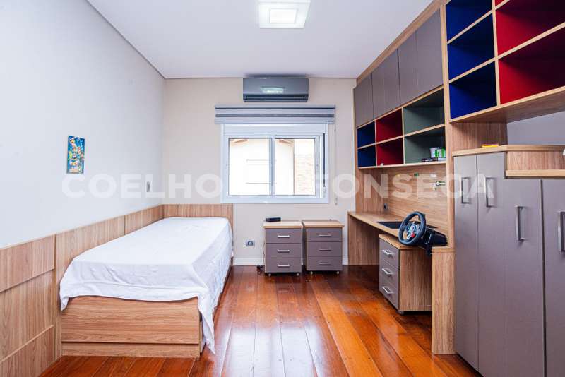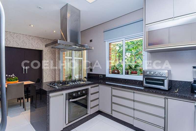 Parte superior :- 4 suítes, sendo a suíte do casal com closet e amplo terraço, e as outras três, repletas de armários. Circulaçao com armário e home theater.Térreo - Living amplo (sala de estar, TV, sala de lareira e Sala de jantar), escritório, lavabo, Cozinha, integrada à sala de almoço com louceiro, despensa, Lavanderia, Suíte de Serviço. Todos os armários, acessórios, luminánaria e moveis de primeirissima qualidade. Ar condicionado em todos os ambientes. Espaço de convivência familiar, área gourmet com churrasqueira a gás, amplo quintal com piscina aquecida . Entrada da casa : Garagem para 4 veículos, Depósito. Conforto, segurança e qualidade de vida!