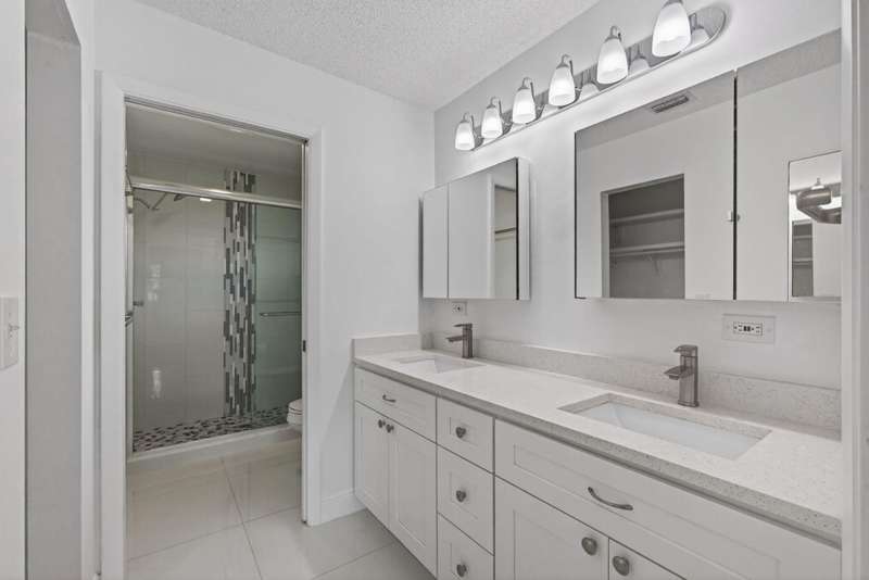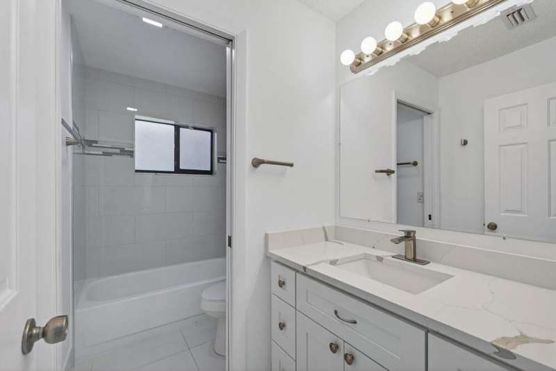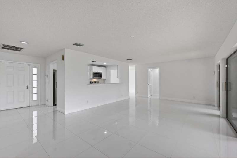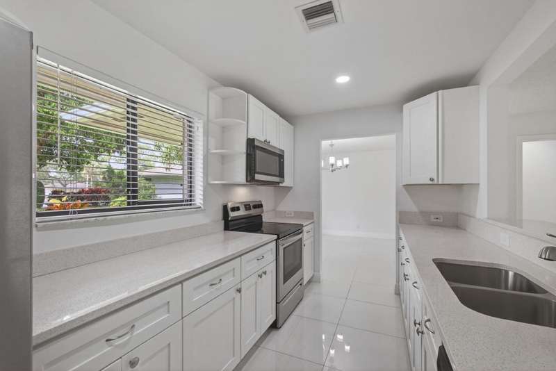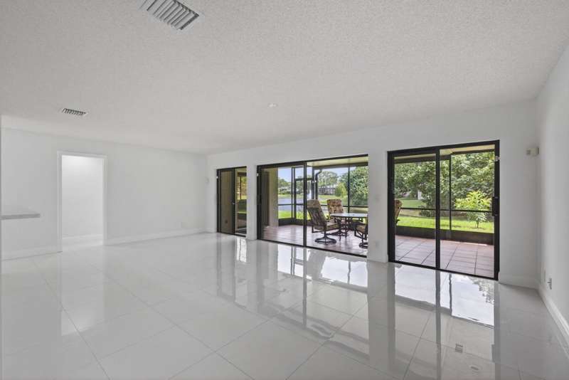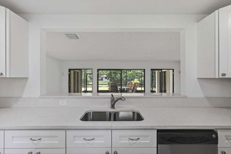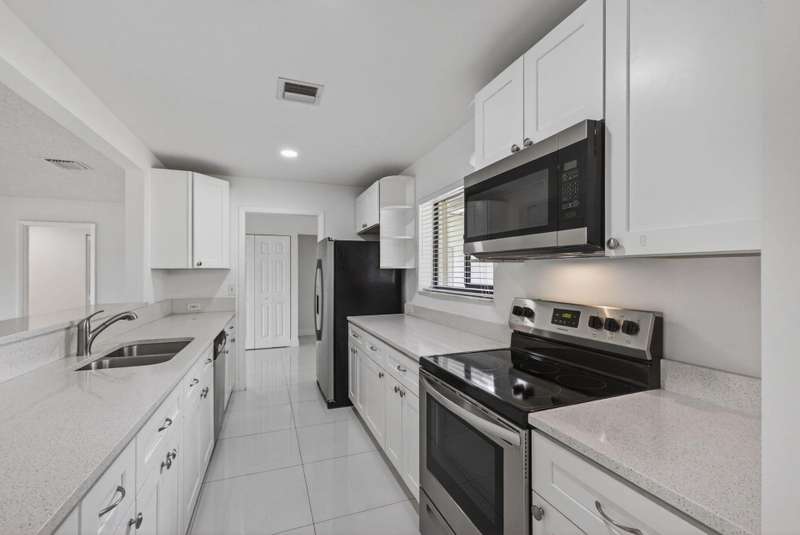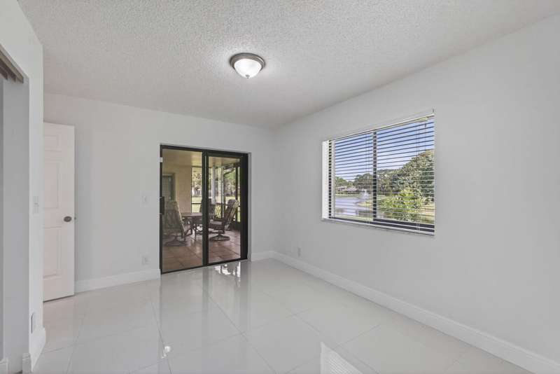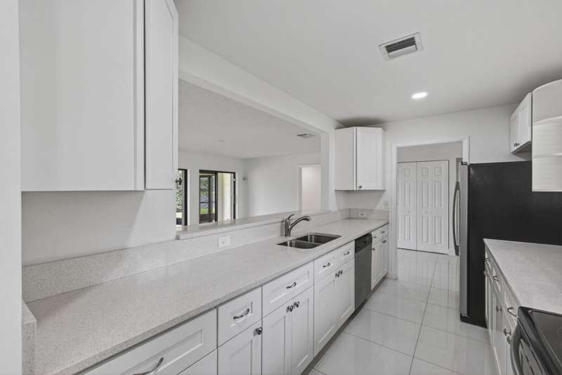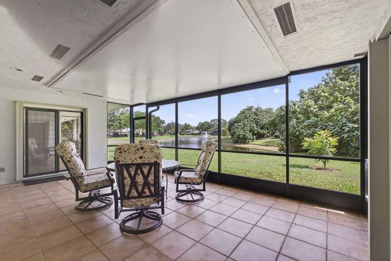 This is the home youve been waiting for! Easy living in this completely renovated, move-in ready 3 bedroom, 2 bath lakefront home located in the peaceful hidden oasis of Fox Hollow. Living here is like living in a nature reserve, nestled into mature lush native landscape that supports the local water birds, butterflies and wildlife. Enjoy a kaleidoscope of colors of the lake from sunrise to sunset. Tucked away at the end of a quiet cul-de-sac, this waterfront home has a desirable split floor plan and coveted open living concept. The kitchen features wood white Shaker cabinetry, stainless appliances and quartz countertops. There is a walk-in pantry off the kitchen that provides additional storage. The main living area has gleaming white large scale tile throughout. The kitchen and living areas look directly onto a spacious screened patio that overlooks the lake. The primary bedroom has views of the water, an en suite bathroom, walk-in closet, and sliding doors that open onto the patio. Two guest bedrooms share a bath. Freshly painted and waiting for its new owners! HOA includes HEALTHY RESERVES, all lawn care, trimming and maintenance of plants, community management, gate, community pool and clubhouse.