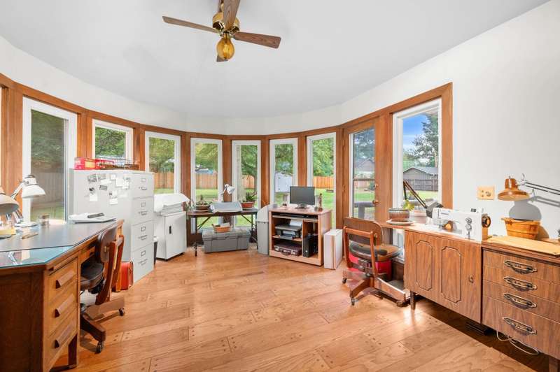 Welcome to 133 N Arcadia! This charming 2-bedroom, 2-bath home beautifully combines modern comfort with timeless character. Just blocks from Rolling Hills Golf Course and Country Club, it sits on a spacious half-acre lot in a quiet, non-HOA neighborhoodperfect for both indoor and outdoor living. Step inside to find gorgeous original hardwood floors in the entryway, living room, and bedrooms (currently covered by carpet). The living room offers plenty of space for relaxation or entertaining. The kitchen and dining combo features newer granite countertops, and the adjacent laundry room doubles as a convenient pantry with excellent storage. Down the hallway, youll find a comfortable guest bedroom and full bath. The large primary suite includes its own private bath and closet space, with an attached sunroom/office showcasing more of those beautiful original hardwood floors. Dont miss your chance to own this hidden gem!