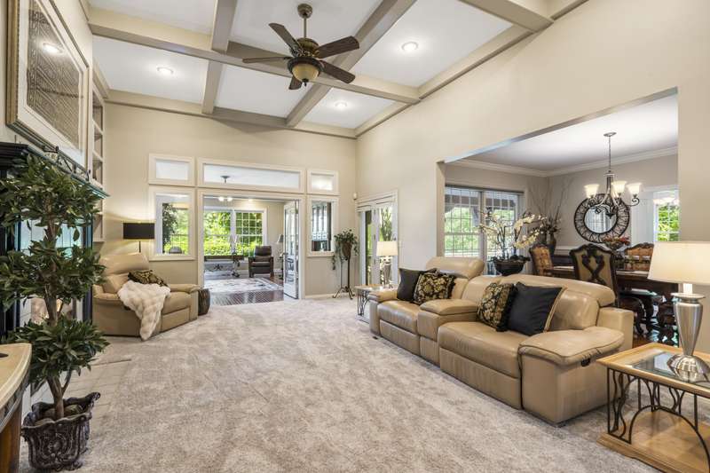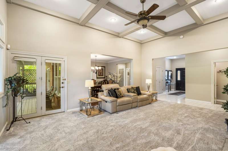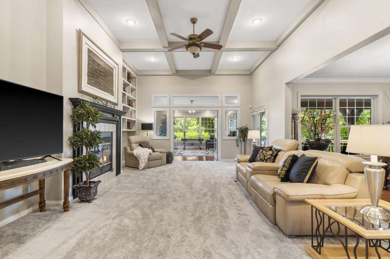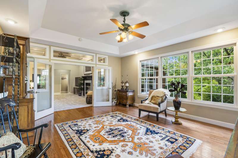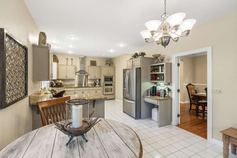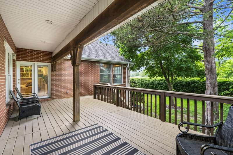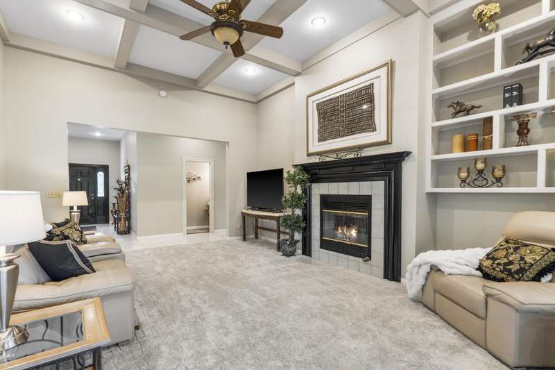 Stunning one-level home on the 18th fairway of Fremont Hills Golf Course! This beautifully updated property features a new roof, fresh interior paint, and newly painted kitchen cabinets. Enjoy spectacular golf course views from multiple rooms, including a heated and cooled sunroom with hardwood floors and panoramic window views. The living room boasts 14' coffered ceilings, new carpet, a gas fireplace, and built-in shelving. The kitchen includes granite countertops, stainless appliances, a pantry, and an eat-in area, with additional access to a formal dining room with wood flooring and crown molding. Step onto the covered deck for grilling or relaxing in privacy. The spacious primary suite features hardwood floor & a gas fireplace. The en-suite bath offers a jetted tub, dual vanities, a walk-in shower, and walk-in closet. Two additional bedrooms complete the interior layout. Outside, enjoy a secluded backyard with 180 fairway views and direct course access. A custom golf cart path leads to a John Deere room, featuring 700 sq ft of storage or workspace with double doors. The oversized 3-car garage (23.7' x 31.4') includes 9' doors and an electric golf cart charger for golf enthusiasts. Fremont Hills is a city (no HOA), and club membership is optional. Club amenities include golf, pickleball, tennis, a pool, and more. Natural gas is now available in the area. This move-in-ready home offers light-filled, open living spaces in one of Nixa's most sought-after subdivisions with a fun, country club lifestyle. Call today for your private showing!