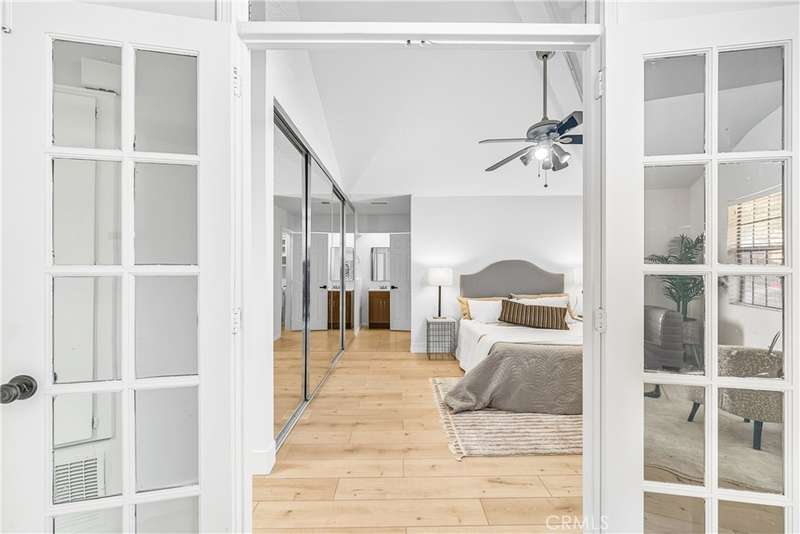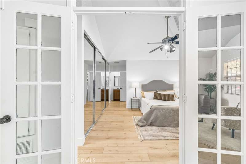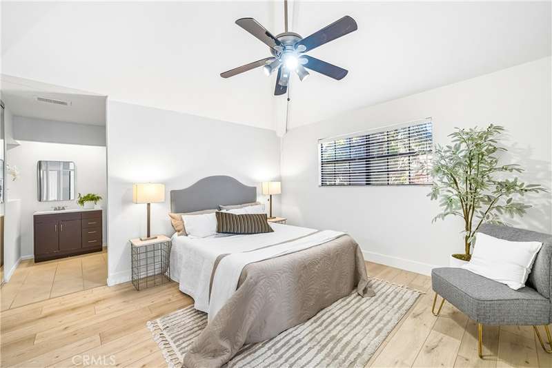 A freshly completed, meticulous remodel has transformed this end-unit condominium in Santa Ana into a thoroughly modern and elegant residence, now available for immediate occupancy. Beyond its private, gated front entry, discover a bright and open-concept floor plan designed for sophisticated living and effortless entertaining. The gourmet kitchen, featuring all-new appliances, flows seamlessly into the expansive living area, creating an inviting and connected atmosphere. No detail was overlooked in this comprehensive renovation. The home boasts brand-new, waterproof vinyl plank flooring and contemporary recessed lighting throughout, establishing a warm and stylish ambiance. The oversized master suite offers a private sanctuary, with double doors opening to a tranquil retreat. This haven includes a thoughtfully redesigned en-suite bathroom for the ultimate in comfort and style. The additional bathrooms have also been fully updated to provide a crisp, contemporary feel. Comfort is guaranteed year-round with the inclusion of central air conditioning. The property's private outdoor spaces include a front porch with a gated entry and a courtyard that provides access to the one-car garage, where a washer and dryer are conveniently located. Further enhancing the value and convenience of this exceptional home, the Homeowners Association (HOA) covers water, trash, and sewer services. Seize this rare opportunity to own a beautifully upgraded, move-in-ready home in a prime location.