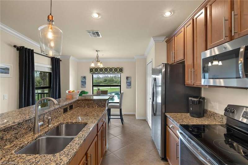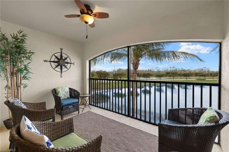 Welcome to your new Naples Lifestyle in Treviso Bay! This second floor condo features 1454 sf, 2 Bedrooms + Den, 2 Bathrooms, 2 Screened Lanais, a Detached Garage, and the most desirable Southern Lake View in all of Avellino. Offered turnkey, this well maintained unit checks all of the boxes and is ready for a new owner to start living their dreams. Additionally, this home is a short stroll away from the community amenities center. Treviso Bay features an unrivaled list of amenities, mature landscaping, close proximity to Downtown, Marco, & Beaches, and an active, vibrant community. Amenities include Tennis, Pickleball, Basketball, Bocce, Resort Pool, Lap Pool, Lakefront Beach, Spa, Multiple Exercise Facilities, Multiple Dining Venues & miles of Walking/Biking Pathways. The 18 hole, tour-caliber golf course was designed by Arthur Hills and is in the PGA Tour s acclaimed TPC Network of Clubs. As a Social Member, residents are granted complete access to the entire set of amenities within