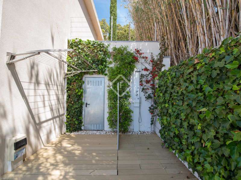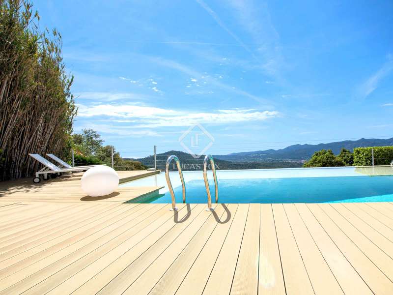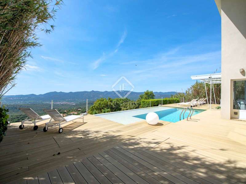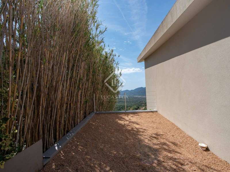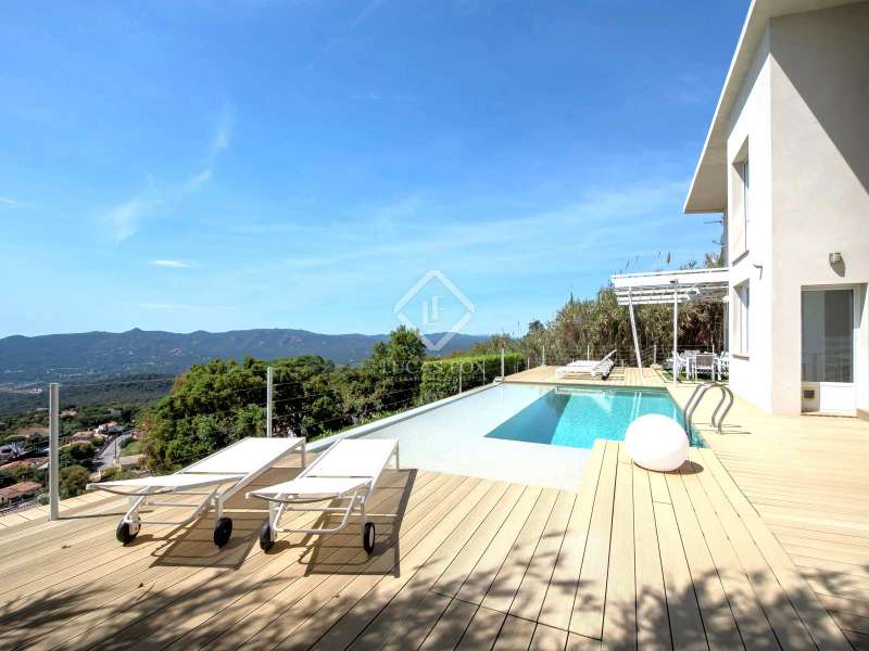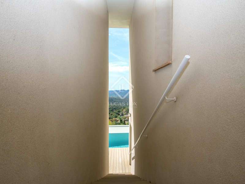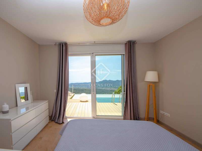 Lucas Fox presents this new build house distributed over two floors with privileged views of the sea and the mountains, for sale in Sant Cristina d'Aro. We access the property through the upper floor . A entrance hall gives way to the bedroom area, which has three bedrooms, one of them with its private bathroom and built-in wardrobes. The rest share a full bathroom that covers the needs of this floor. Next to the entrance door and in front of the bedroom area, there is a staircase that leads to the lower floor . The three bedrooms have large windows with excellent privileged views of the valley, the sea, the pool and the garden. On the lower floor , we access a cozy kitchen equipped with excellent appliances, with a small dining area and a large window with wonderful views of the garden and pool area. It also has a multipurpose room, with a dining area and living room area, which can be used as a cinema room. The large windows in this room provide access to the pool, garden and barbecue area. On this floor, the main bedroom is located, which has a large dressing room and storage areas with many possibilities for use. It has its own bathroom with high quality finishes and direct access to the large infinity pool and garden, with privileged panoramic views of the sea and the mountains. The floor is completed with a utility room room with a discreet guest sink and space for storing household utensils. Exterior, there is a swimming pool and a pleasant and cozy, easy-to-maintain Mediterranean garden that surrounds the pool. Here, a barbecue area has also been created and a pleasant exterior shower has been installed, next to a discreet access door to the technical or machinery room. In an annex building, a garage for two cars is offered, although a new construction could be created, since it has two floors and the same panoramic views, ideal for creating an independent apartment or an area to place a workshop or work studio. . The entire house has heating and air conditioning, but it has high quality insulating construction materials that manage to maintain a pleasant temperature inside the entire property, so that significant energy savings are obtained. All windows are of high quality and well insulated. The construction is functional as is, but the land and building can be expanded, according to needs. A property to enjoy all year round, one step away from all amenities, but in an exclusive and comfortable place, in a unique and quiet natural environment, with magnificent views of the sea and the mountains. Get in touch for more information.