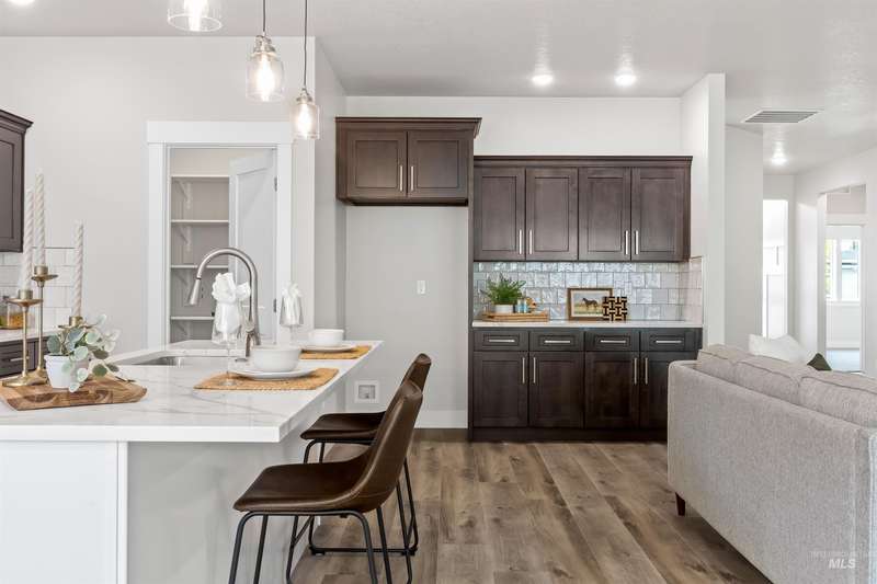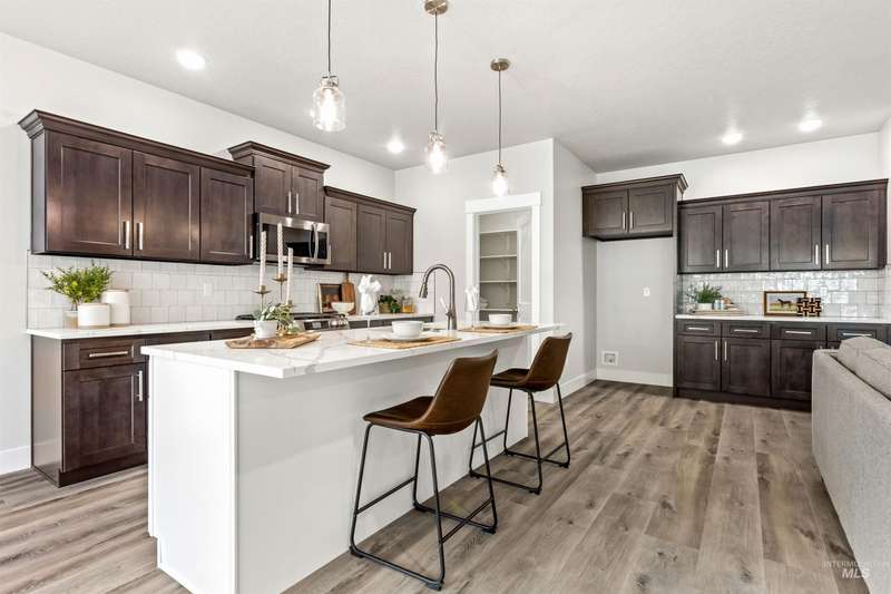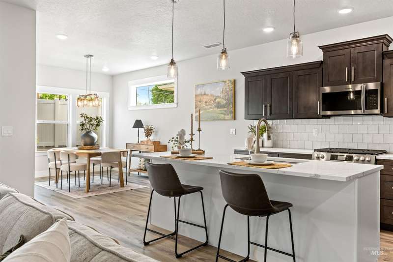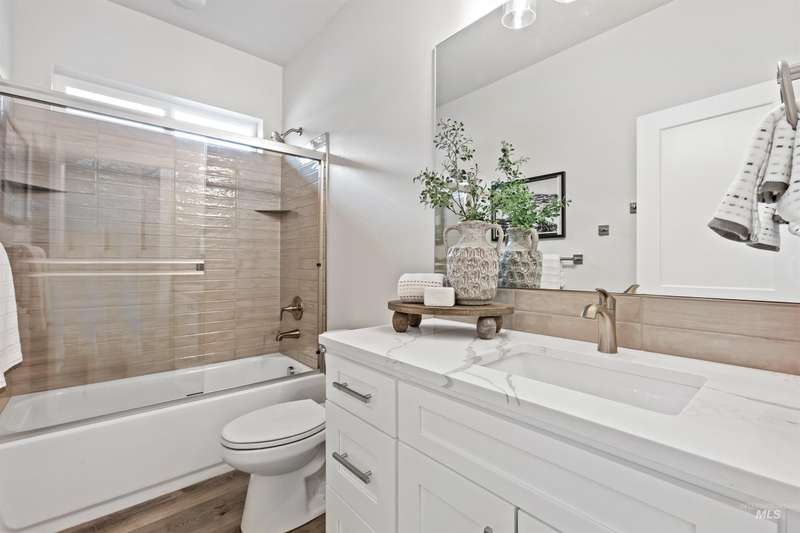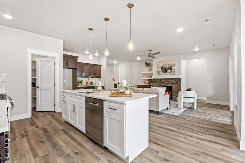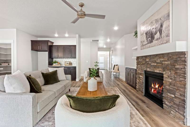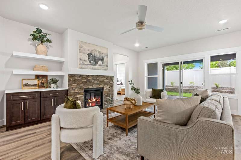 YOUR LUCKY DAY! PRICED TO MOVE! Plus, enjoy a $5,000 concession when you work with the builder’s preferred lender! Discover elevated living in this stunning 3-bedroom, 2-bath home with a dedicated office—perfect for remote work or creative space. Step inside to an open-concept floor plan featuring quartz countertops, premium vinyl plank flooring, a stainless gas range, and a bright living area with a custom-built fireplace and built-ins that exude comfort and style. Two spacious guest bedrooms share a beautifully finished full bath with luxury tile flooring, quartz counters, and a tiled tub/shower combination. The private primary suite feels like a retreat with dual vanities, a fully tiled step-in shower, and designer touches throughout. Located in one of Meridian’s most convenient neighborhoods, this home offers easy access to the freeway, Albertsons Marketplace, the YMCA, and top-rated shopping, dining, and schools. The HOA maintains front and back lawn care, providing a low-maintenance, turnkey lifestyle so you can simply move in and enjoy. Don’t miss your opportunity to make this beautiful new construction home in Meridian, Idaho yours today—schedule your private showing before it’s gone!