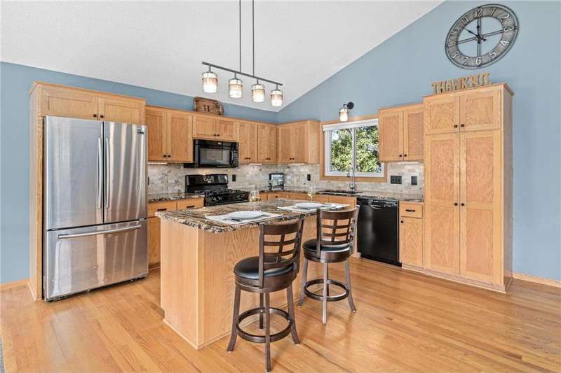 Welcome Home! This spacious 5 Bedroom gem offers comfort and convenience in a quiet, Non- thru street Neighborhood. With 3 bedrooms all on level, this home is designed for both functionality and style. Inside you will find beautiful wood floors, classic panel doors, and vaulted ceilings that create an open, airy feel. The kitchen features a stainless Refrigerator with a gas stove, dishwasher , microwave and disposal. Granite counter tops with stone backsplash, under cabinet lighting, center Island, and Patio walking out to a beautiful deck overlooking the large privacy fenced yard featuring a large fire pit for those nice evening fires. The main bath features a extra large vanity, jetted tub and separate tile shower, and walk through to the owner's suite. The lower level features a huge Family Room/Rec. Room with built in Dry bar perfect for entertaining or relaxing. 2 additional Large Bedrooms/flex rooms for home office or exercise. There is also a beautiful ¾ bath and large laundry room. The 3-car garage with storage shelves and attic storage provides plenty of space for vehicles, hobbies, or storage and if that is not enough there is a large storage shed in the back yard as well. This home truly combines charm, space, and a great location-Don't miss it.