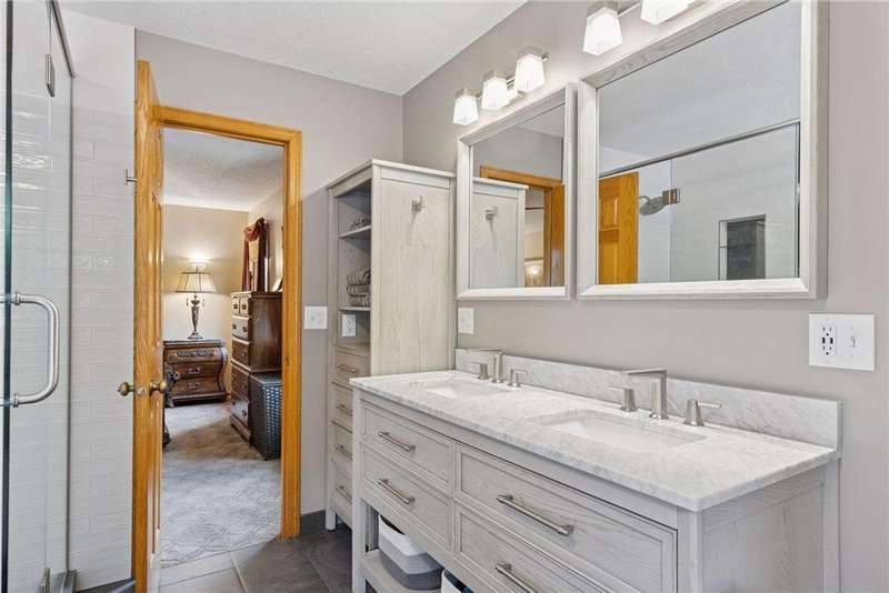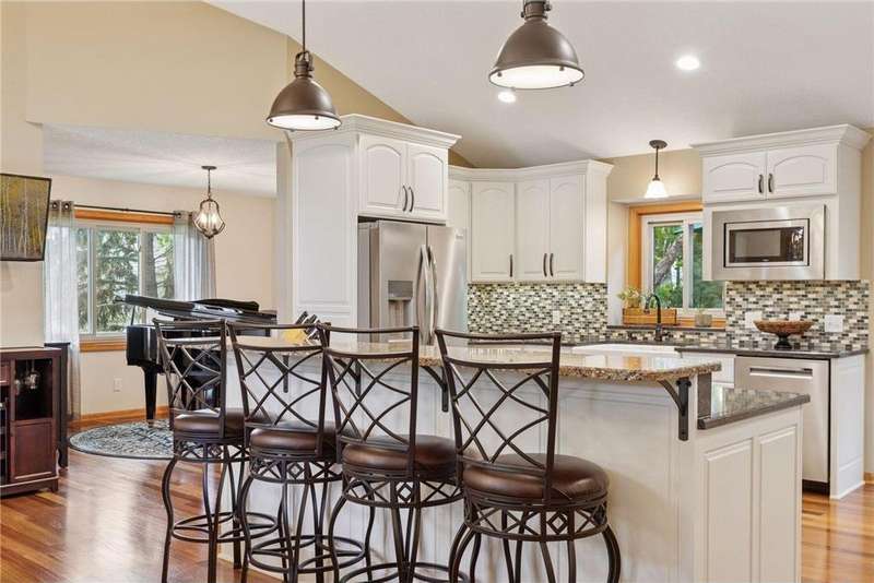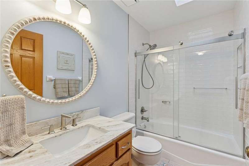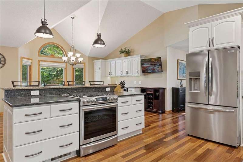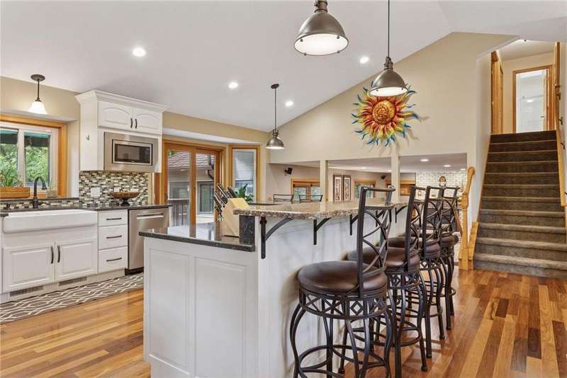 Welcome to the suburban retreat you’ve been looking for and fully deserve! This well-maintained 4-bedroom, 3-bath, 2nd owner home features a spectacular updated open-layout with high vaulted ceilings greeting you to your huge, beautifully updated kitchen with dual islands, gorgeous hardwood floors throughout, updated lighting throughout, a fully remodeled primary suite bath with spa like features – large soaking tub with a view, separate walk-in shower with exceptional tile work, White Carrara marble counters – an updated full bath, updated mechanicals for peace of mind, a complete 2nd kitchen in the lower level, oversized 3-car garage, and to top it all off: the ultimate backyard getaway with multiple decks for lounging and grilling, large in-ground pool and pool deck for splashing and tanning, your very own bar shed for sipping and entertaining, and it’s all surrounded by impeccably maintained landscaping and hardscapes. You will not be disappointed - make this stunner your new home!