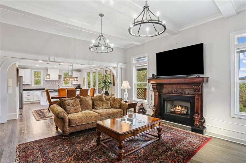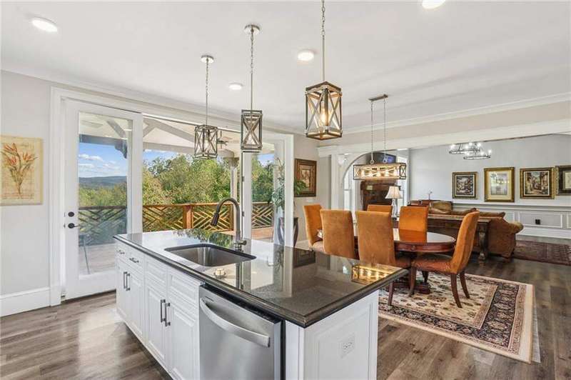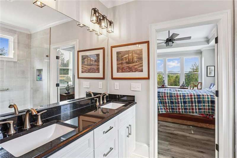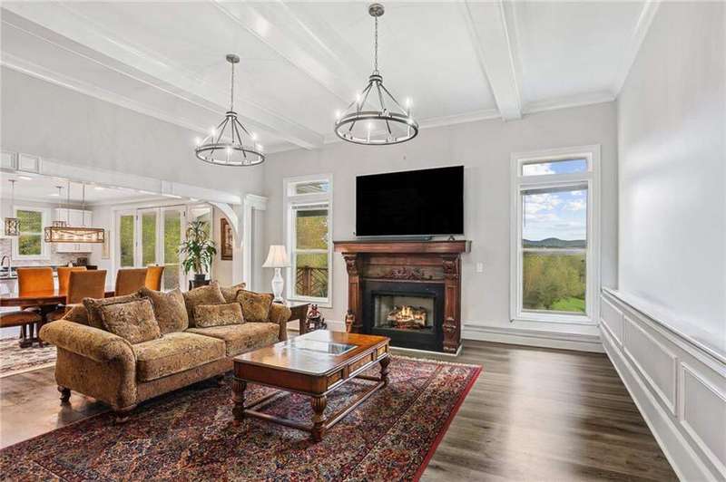 Welcome to 1656 Talking Rock Road, Jasper, GA - a breathtaking 5-bedroom, 4.5-bathroom home with a rare 4-car garage, nestled in a quiet wooded community with unmatched mountain views. Thoughtfully designed for both luxury and comfort, this two-story retreat offers spacious living, upscale finishes, and versatile indoor-outdoor spaces perfect for entertaining or relaxing in peace. As you enter, you're welcomed by soaring ceilings, detailed crown molding, and natural light pouring into an open-concept floorplan. The main living area features hardwood flooring, a cozy fireplace, and seamless flow into the chef's kitchen, where you'll find granite countertops, a large island, decorative backsplash, stainless steel appliances, and a professional 8-burner cooktop-ideal for culinary enthusiasts and home entertainers alike. The main-level owner's suite is a private haven, featuring a spa-like en-suite bathroom with double vanities, a walk-in tiled shower, granite countertops, and a large walk-in closet. Every additional bedroom offers its own walk-in closet and private en-suite bathroom, complete with modern vanities and elegant finishes. Upstairs, a second living area opens to a private deck with jaw-dropping mountain views, while the terrace level offers a fully finished basement perfect for a game room, in-law suite, or private guest quarters. This level includes a second kitchen, bathroom, living area, private entrance, and even a panic room designed for natural disasters or added peace of mind. Outdoor living shines here, with a front porch, private patio, upper-level deck, and a beautifully landscaped yard - all framing those unforgettable mountain views. Whether you're sipping coffee at sunrise or entertaining under the stars, this home delivers the lifestyle you've been looking for. Located just minutes from Jasper Middle School, Jasper City Park, local dining, downtown Jasper, Walgreens, and Walmart Supercenter, this home is the perfect blend of luxury, comfort, and convenience.