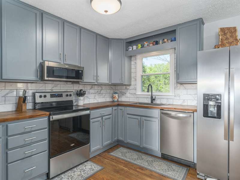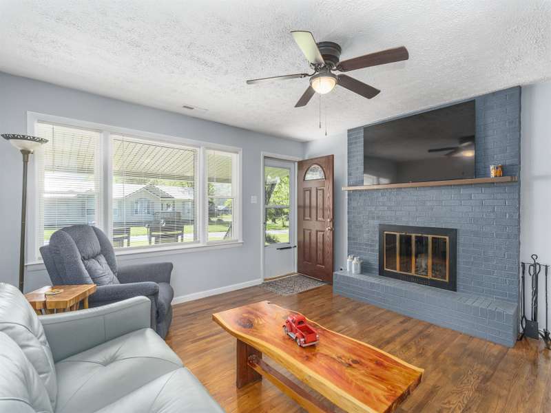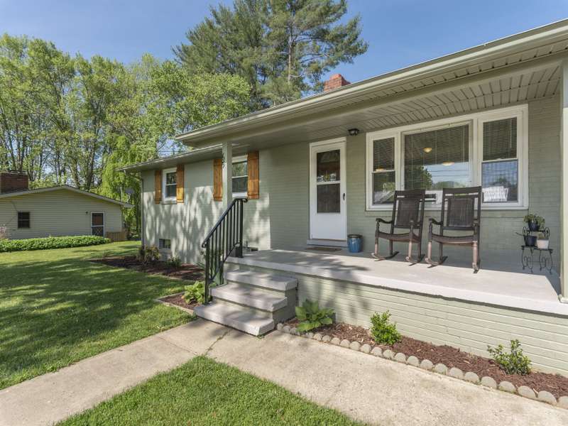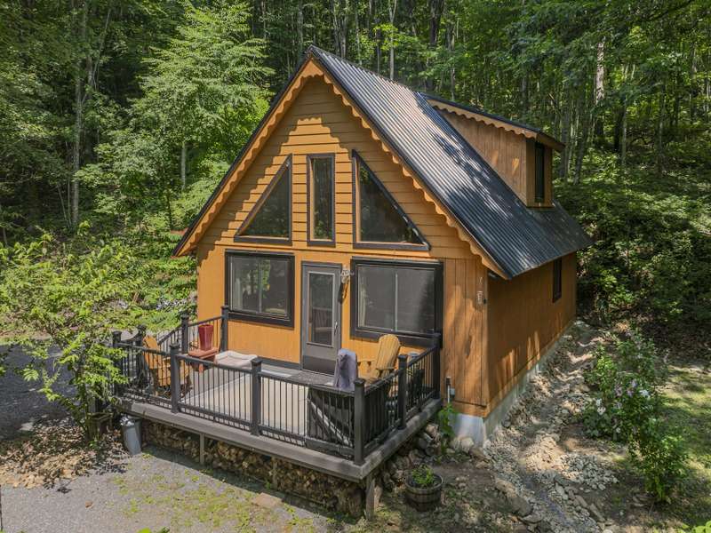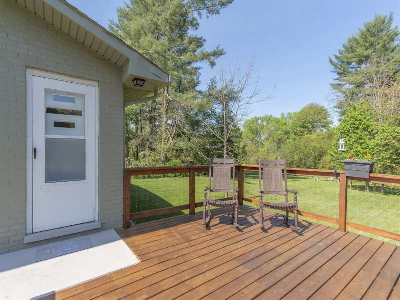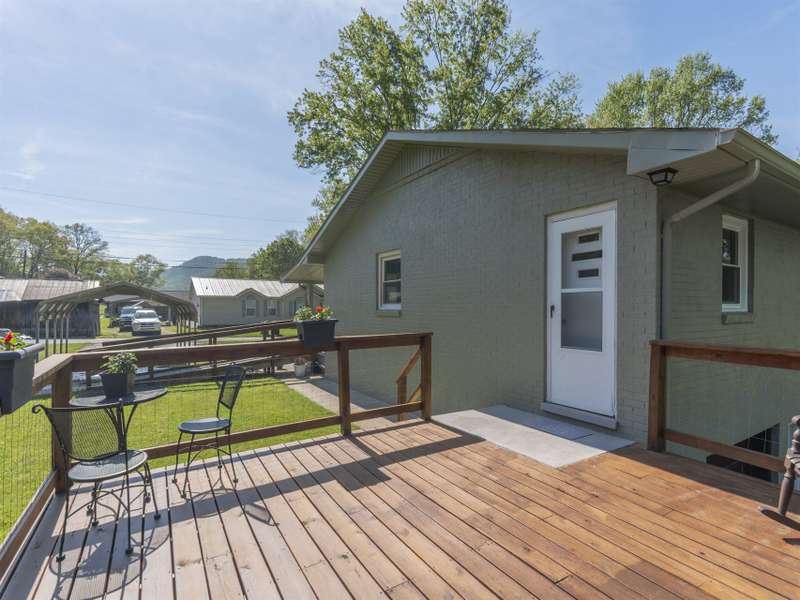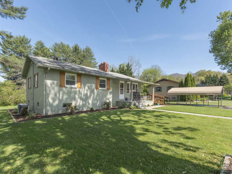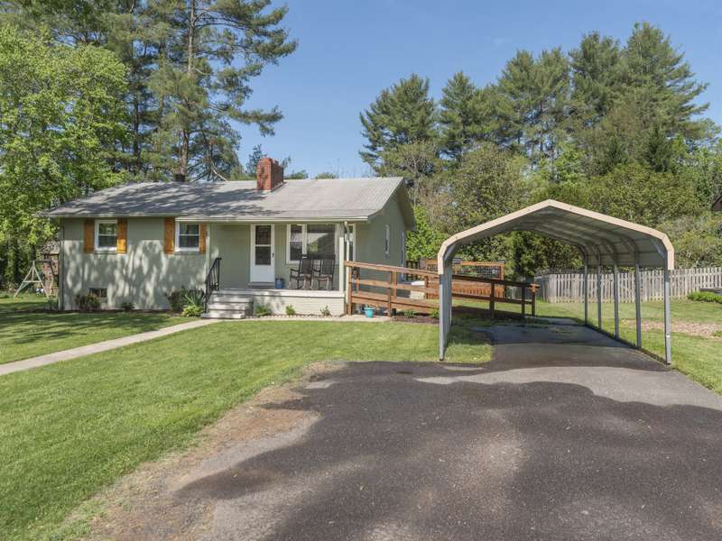 Charming brick ranch with classic appeal and modern updates! This move-in ready home features warm wood flooring, butcher block countertops, stainless steel appliances, and a cozy wood-burning fireplace in the living room. Take in lush mountain views from your front porch, or unwind in the spacious, level yard perfect for enjoying the outdoors and hosting gatherings around the fire pit on crisp mountain evenings. The basement offers ample storage for all your outdoor gear or the potential to finish it out into a bonus living space, complete with a stunning stone fireplace. Fresh, low-maintenance landscaping adds to the home's curb appeal, and a large side deck is ideal for BBQs and entertaining. Just a few houses down, you'll find a river where you can fish or simply relax to the sounds of nature. Don't miss this rare opportunity to own a peaceful mountain retreat that's both functional and full of charm!