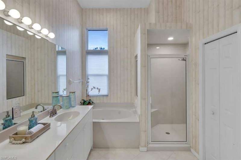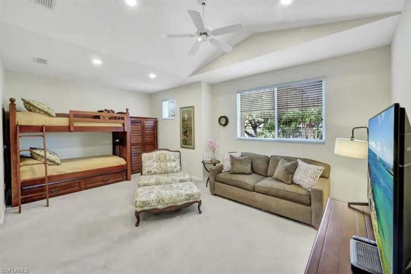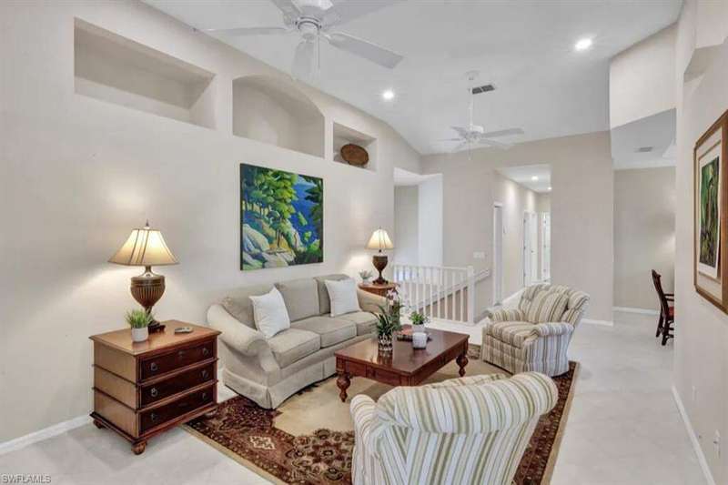Welcome to exceptional living in the vibrant gated community of Bonita Bay. This fantastic condo residence gives you the feel of living in a treehouse, with the lanai set in the peaceful tree tops of The Crossings, surrounded by nature. This stylish, second-floor condo features volume ceilings, three bedrooms, two bathrooms, and tile floors, enhancing the spacious great room design and relaxed dining room. Also included are hurricane-related sliding glass doors on the lanai and an attached one-car garage, a neighborhood swimming pool, a hot tub, and a pavilion. The many amenities of Bonita Bay includes tennis, pickleball, bocce, kayaking, canoeing, walking trails, playgrounds, a private beach club, Optional Golf, Sports, and Social membership, dining at Backwater Jack's, and a full-service marina. Located conveniently near Coconut Point Mall, The Promenade, RSW International Airport, theaters, and the lively downtown area of Bonita Springs. This residence offers a blend of tranquility and the excitement of city life. Experience the ultimate blend of luxury and leisure at this remarkable property.