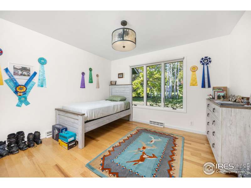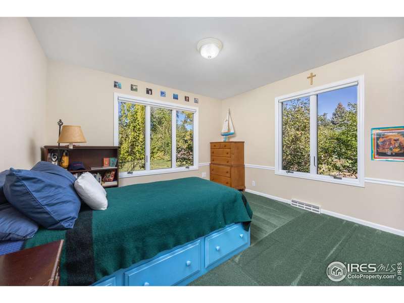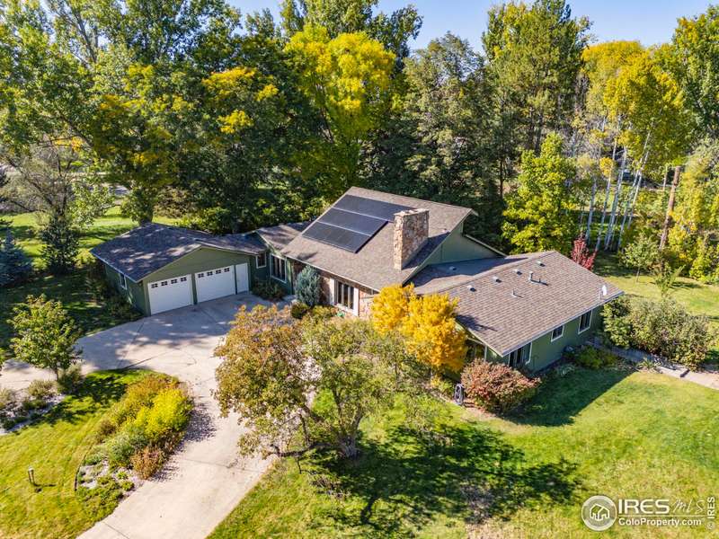 This welcoming home is rooted in a secluded grove on 2/3 acre in the sought-after Lindenwood neighborhood. Inside, abundant windows on the main floor bring in uplifting sunlight throughout the day. Hickory floors cover most of the main, adding to the warm feel. At the west end, the eat-in kitchen - remodeled in 2018 - opens to a sheltered stone patio. The dining room offers space for more formal meals. The master ensuite flows from den to bedroom to the skylit bathroom with shower, jacuzzi bath, and walk-in closet. The vaulted ceiling in the large, airy living room provides concert hall acoustics while a gas fireplace supplies warm ambience to your gatherings. Through a glass door from the living room is a newly rescreened porch with a similarly high ceiling. At the east end of the house, sunrise shines into a large sitting room. The many windows make this room a dream for artists or anyone who craves the winter sun. Across the hall are two bright bedrooms and a bath. Head downstairs to the three finished basement rooms, one with fireplace, and a third bath. The owned solar panels provide no-cost electricity.Open space greenbelt borders the property to the north and west, and across the quiet drive to the south. A mixed, mature hedge of native and other leafy shrubs provides privacy for the kitchen patio, screened porch, and back yard. Flowering and fruiting trees, shrubs, and herbaceous plants provide color from early spring to fall and welcome bird and insect pollinators. Mature trees provide shade and color your fall while a large vegetable garden can feed your family. The yard and nearby lake attract over 60 species of birds from bald eagles to hummingbirds.HOA amenities include a lake, tennis courts, stables, and playground. Quiet, private roads and open spaces make for pleasant walking and safe children's play. All this is nestled in one of the most desirable neighborhoods, just minutes from Old Town and all that Fort Collins has to offer.