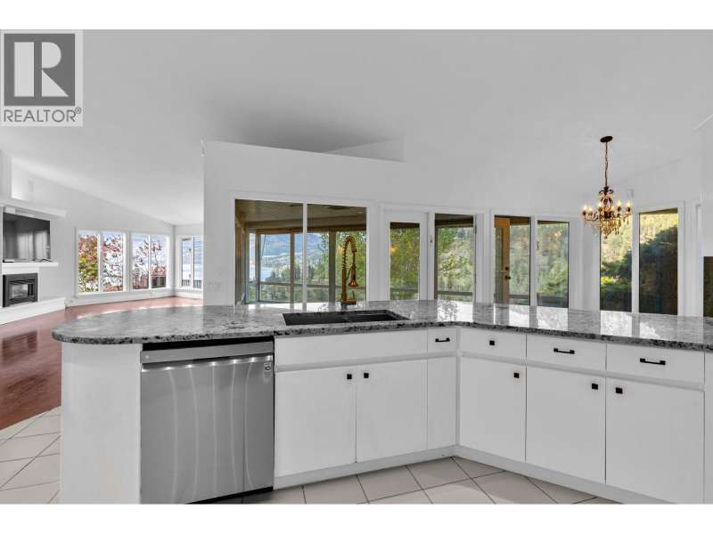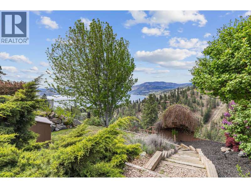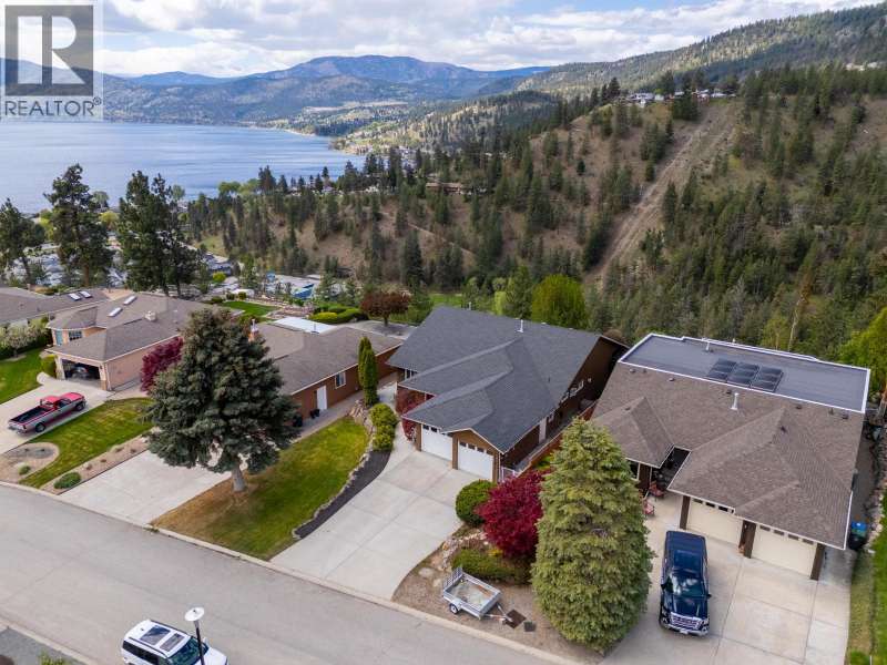 Enjoy sensational views from this Sanmarc custom designed home in desirable Peachland. The main floor features an open concept living room, dining area and kitchen with vaulted ceilings and expansive windows to take in the beautiful lake, canyon and mountains views. The kitchen is equipped with newer appliances, beautiful granite counter tops and plenty of cabinet space with room to cook and entertain. The primary bedroom offers lake views and a has a spacious ensuite and two walk in closets The second bedroom, bathroom and laundry are also found on the main floor. The lower level has the third bedroom, bathroom and family room. There is direct access to the private back yard and hot tub off the family room. Other features include a glassed in viewing sunroom off the kitchen, hardwood flooring, central air, central vacuum, an oversized double garage with 220 amp hook up, Ev charger and a nicely landscaped yard with underground irrigation in a cul de sac location. Don't miss out on this exceptional view home minutes away from hiking trails, kids park and elementary school. Priced to sell $100,000 under the assessed value! (id:7434)