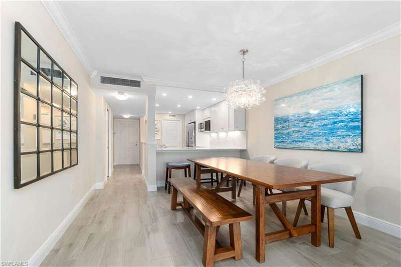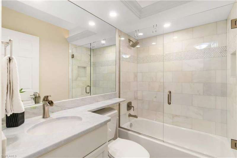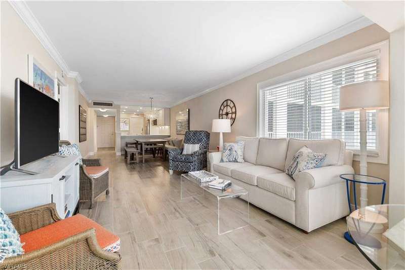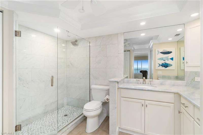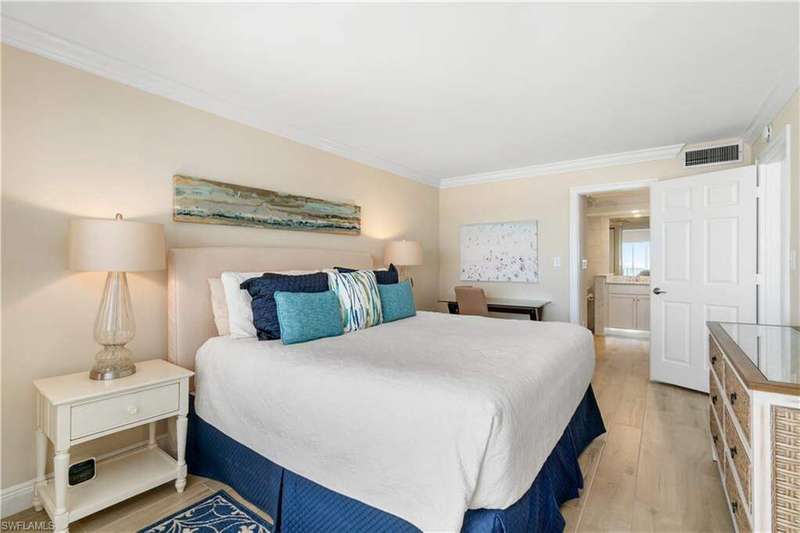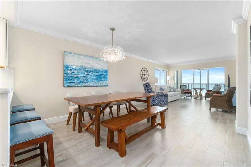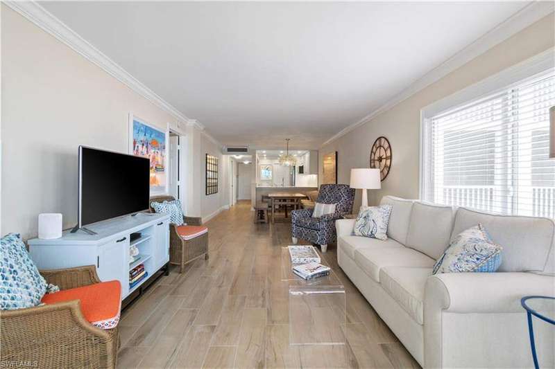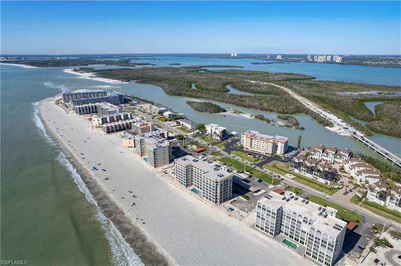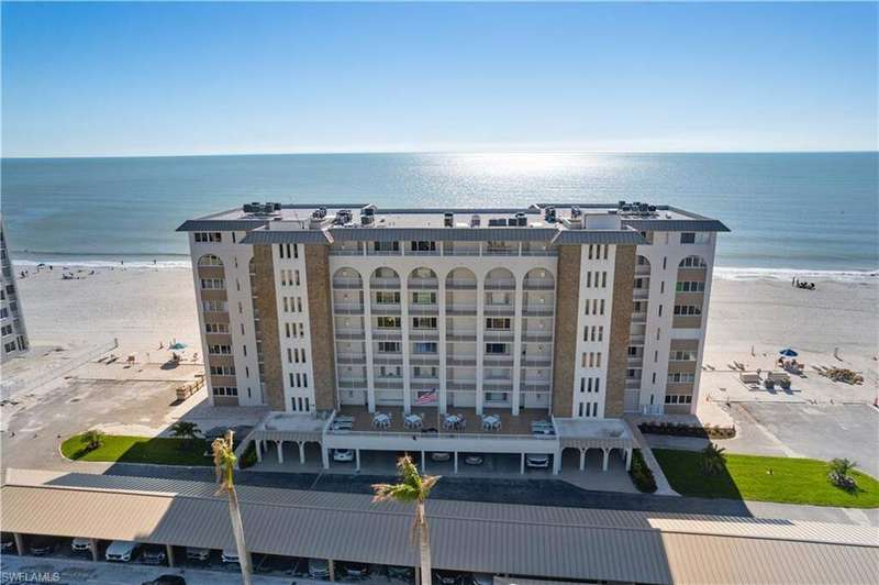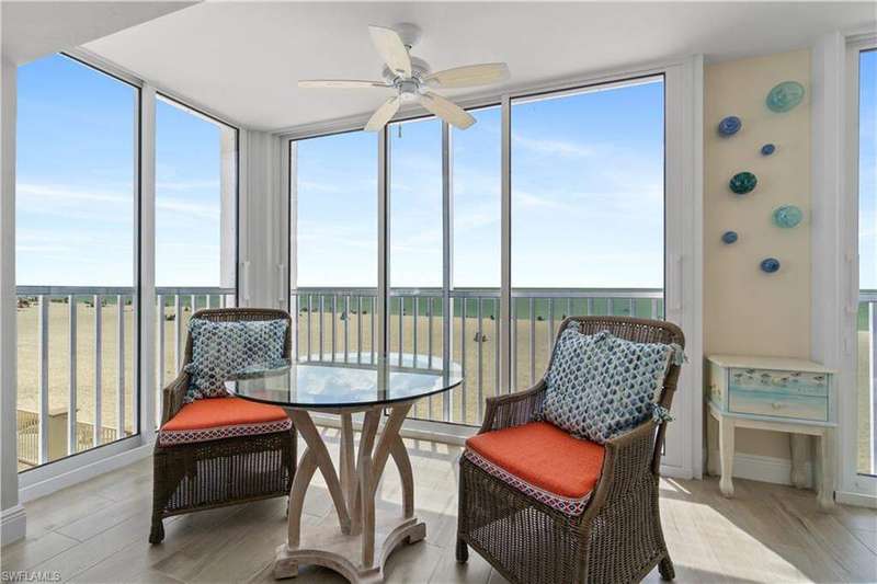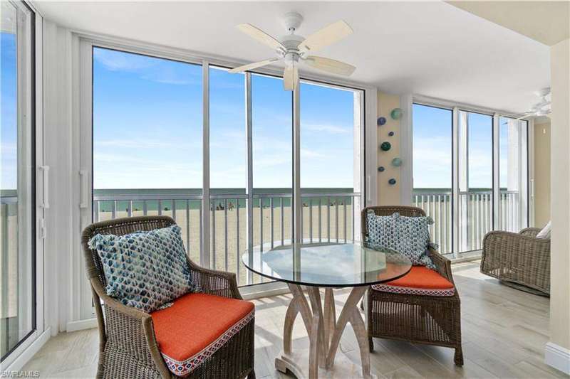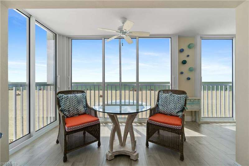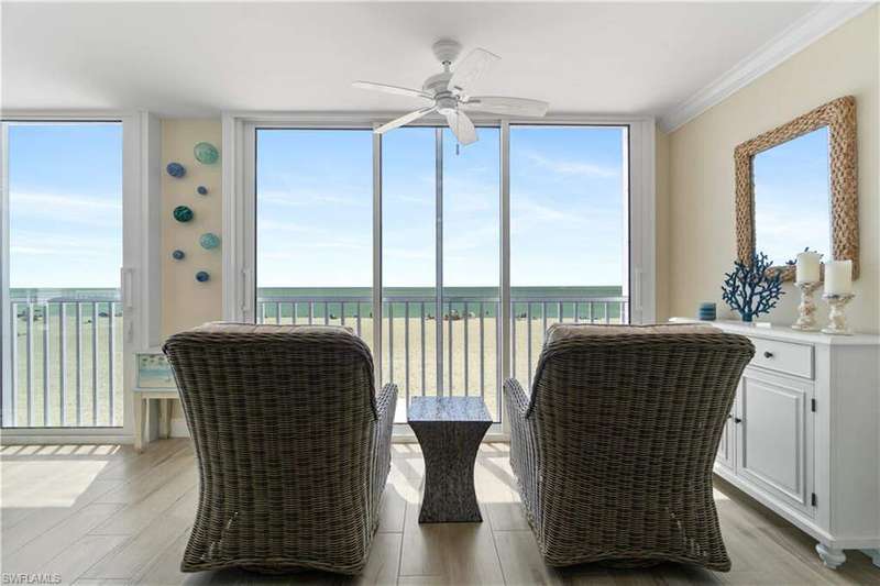 Beautifully renovated, coastal contemporary beachfront condo in Casa Bonita Grande on the peaceful north end of Bonita Beach. With breathtaking views of the turquoise waters and pristine white sands, this 2 bedroom, 2 bathroom condo is the perfect coastal retreat. This unit features a coveted second floor location with an exceptional view of the surf and the pool. Completely updated, the unit boasts beautiful marble countertops, wood-look tile flooring, new hurricane-impact sliders, a new HVAC system (2021) and a new water heater (2023). The enclosed air-conditioned lanai is an entertainer's dream, offering the option to open the glass sliders and enjoy the sound of the surf. The beautifully remodeled chef's kitchen is complete with crisp white cabinetry and new GE stainless steel appliances (2021). Additional features include a designated covered parking space, ample guest parking, and convenient access to the second floor sundeck with a gas grill and spacious seating areas - perfect for relaxation or entertaining. Casa Bonita Grande is financially solid with fully funded capital reserves and offers resort-style amenities, including a beachside pool, community room, a fitness center and more.