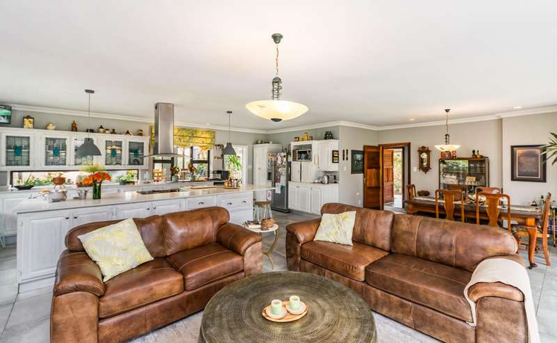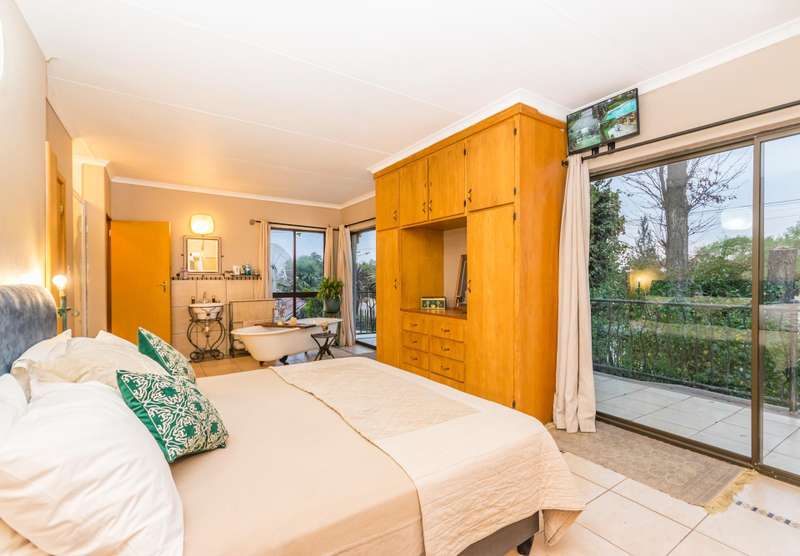 * Pay R3 300 000 PLUS R 1 000 000 Rent to buy... R38 400 per month....(t & c's) Be the Envy of ALL.... Something Special....Welcome to this Majestic Masterpiece.... Exclusive Viewings *** By Appointment Only*** A Total of 7 Bedrooms, Could be used as a Guesthouse or Perfect Bed & Breakfast.... Manicured gardens, Rolling lawns, Like stepping into a magazine, Bursts of color, Water features, Ponds with little quaint bridges, Really feels like a storybook.... Main house with Master Bedroom Upstairs, Juliet balcony... Leads onto Bedroom Fit for a King and Queen, Walk in closet, Dressing area, Separate Shower and Toilet, Bath open plan in Bedroom, Balconies overlooking the garden... Downstairs offers 3 Bedrooms, Guest suite with exceptional size, Bedroom with, Lounge area, Study nook, Walk in closet, Bay window, and leads onto private courtyard and main garden lawns...Complimented by En Suite Bathroom. Second and Third Bedroom also offering sliders leading onto courtyard. Modern Guest bathroom with Seamless Shower, 'Livingstone' Free Standing bath, Toilet and Basin. "Heart of the Home".... all Open plan with Sliders leading onto manicured lawns, Fireplace, Dining area, TV Lounge, Family Room all easy access and easy flow onto Modern Kitchen, Large Centre Quartz top Island, Electric oven, Dishwasher, Double Fridge, Pantry Cupboard, Coffee corner, Double FRANKE Charcoal sink, Big Stainless Steel Extractor fan, Bay Window with Quartz top, with views overlooking immaculate garden...Under Floor Heating throughout...Rhinolite ceilings, Cornices & Downlights to finish it all off... Second House or Flat, Offers 3 Bedrooms or 2 Plus Large Private Formal Lounge, Leads onto Big Open Balcony with views. Open Plan lounge and Dining area, all with exposed wooden ceilings and beams, Modern Kitchen with Cemcrete Centre Kitchen Island and Breakfast/Dinner nook, 2mx3.5m. Super Large and Super Impressive! Electric Oven and Stove, Double sink, Flue from Fireplace downstairs gives a great feel of warmth and the finer details of this magnificent home... Sliding doors all round opening onto balconies from all angles...Two bedrooms share en-suite bathroom. Upstairs with Laminate flooring throughout. Next Level entertaining, Feel like you at Sun City, Cocktail Bar area, Fireplace Boma, Sauna, Jacuzzi, Guest Toilet, Walk down the staircase into "Rein se gat" Winecellar and cigar room, All tiled.... Stack away doors open up the entire Western side, Leading onto pool area and gardens.... Outside Braai area, Pergola set in corner and tucked away. Courtyard with the most tranquil feel brings both dwellings together, Tree ferns, Overhanging Plants, Water features, Pizza Oven... Creates the Entrance and another outdoor reception area. Feel like you sitting in a Hidden European Alcove in Italy.... 2 Bird Aviaries, Veggie Garden, Compost heap, Outside Laundry, Under cover wash line, Plumbing for all the appliances and outside sink. Borehole with 2 JoJo tanks and irrigation, Solar panels, 11 kW Inverter. 2 x Solar Geysers, CCTV Cameras, Fiber with wireless connectivity, Heated Towel racks, Blinds, Solid Wood Teak doors. Not your Ordinary home, Not your everyday find, You need to come view and see for yourself...