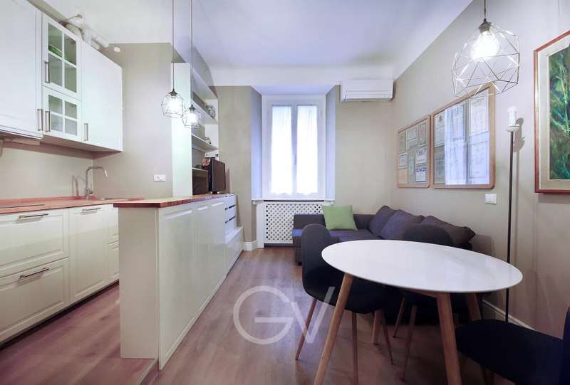 gvr1651 - Via Goldoni - A delightful furnished two-room apartment with double exposition a few steps from Porta Venezia. On the first floor of a nice old Milan railing building, it develops a delightful45sqm two-room apartment with a double silent exposition. The entrance leads directly onto the living room with a sofa bed and the furnished open kitchen completed also with dishwasher and washing machine. In front of it, there is a disengagement that introduces the night area with its gracious master bedroom with storage bed and a large bathroom with a large shower. The apartment in perfect state of maintenance is ready to be inhabited and is delivered completely furnished. The building has a bike place in the courtyard, concierge all day and elevator. Autonomous heating. Air conditioning. The neighbourhood, delicious, is appreciated for its stately residential area, well-inhabited, lively and organized. A few steps from the shopping of Viale Piave and Porta Venezia, known as well for its pubs, boutiques, schools, shops, supermarkets and restaurants. Nearby you find the Indro Montanelli Park, subway MM1 Porta Venezia at 500mt, subway MM4 Tricolore at 100mt and a few steps away the trams9 and 19. Ace G – 254,75. Free at the beginning of December 2025. € 16.800 annual rental fee - € 800,00 condominium fees. Photos, texts, floor plans, etc., are purely for indicative-illustrative purposes and do not constitute documents with contractual value and assumption. Giorgio Viganò Real Estate - 027636151 - www.giorgiovigano.com