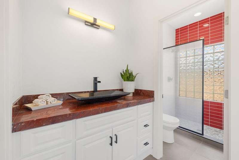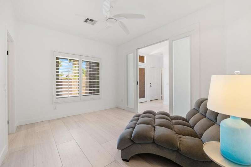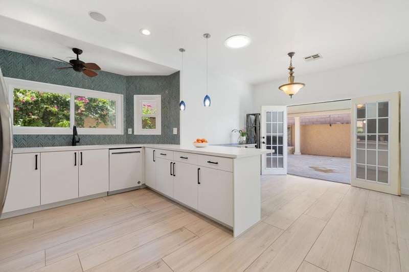 Motivated Seller! Your private desert oasis awaits! Exquisitely updated, this beautifully remodeled home in the sought-after Bella Vista neighborhood of North La Quinta offers approx. 2,600 SF of open-concept living, featuring 4 bedrooms, 3 bathrooms, and a rare private casita. Enter through designer gates into a private courtyard & enclosed patio with a cozy fire pit for intimate gatherings. Natural light pours into the expansive great room with soaring ceilings. Prepare to be impressed by the spacious newly completed stylish kitchen, thoughtfully designed for both culinary excellence and effortless entertaining. Gorgeous tiled backsplash, expansive countertops and generous cabinets, ideal for the modern cook or host. Bright breakfast nook off kitchen with French Doors that open to outdoor living with fireplace. Dining room with flexible use as a family room. Retreat to the spacious primary suite with slider and poolside views to the patio. Experience a spa-like escape in the beautifully remodeled primary bathroom, complete with a breathtaking large double shower, dual sinks, & walk-in closet. Two additional bedrooms with walk-in closets, one with glass frosted sliding doors & beautifully remodeled bathroom. A separate casita off courtyard with remodeled bathroom, walk-in closet & mini split AC unit, offers the perfect private retreat for guests. Escape to your backyard oasis with elegant travertine walkways, where you can relax in the pool & spa with soothing fountains, or host memorable gatherings around the custom fireplace & built-in BBQ. Laundry room, newer flooring throughout, recessed lighting, sola tube lighting, 2 car garage. Centrally located, in the IID for lower cost electricity. Low HOA! Close to IW Tennis Garden, dining, shopping, golf & festivals!