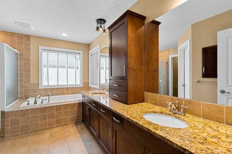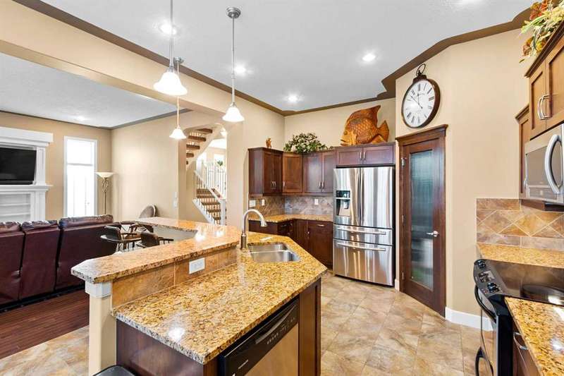 DON'T LET THE EXTERIOR FOOL YOU, STEP INSIDE AND BE AMAZED! This home is full of surprises with its spacious layout, and thoughtful details, that make it perfect for a growing family. Offering over 3,600 sq ft of finished living space, a fully developed walkout basement, and soaring 10 ft ceilings on the main level, this home has a layout designed for comfort and entertaining. The main level greets you with a grand foyer and open staircase, flowing into a bright living room featuring hardwood floors, custom built-ins surrounding a cozy gas fireplace, and large windows that fill the space with natural light. The kitchen is a chef’s dream with granite countertops, warm wood cabinetry, a walk-in pantry, and a large central island, perfect for entertaining. The dining area flows seamlessly out to an upper deck, perfect for morning coffee or summer BBQs. Upstairs, the vaulted bonus room provides a flexible space for movie nights, or a quiet retreat. Two generously sized bedrooms, a full main bath, and a large laundry room with abundant cabinetry and storage. The primary suite is a private oasis featuring vaulted ceilings, a charming window bench, spa-like ensuite with soaker tub and separate shower, and a walk-in closet. The fully finished walkout basement adds a 4th bedroom, full bathroom, ample storage and a large family room with direct access to your backyard sanctuary. Mature trees, an exposed aggregate patio, and a dog run make this space as functional as it is inviting. Additional perks include central A/C, a garage with a generous amount of storage, and a location on a quiet cul-de-sac. Living in King’s Heights means enjoying scenic walking paths, nearby playgrounds, excellent schools, and convenient access to shopping, restaurants, and commuter routes This home truly must be seen to be appreciated!
