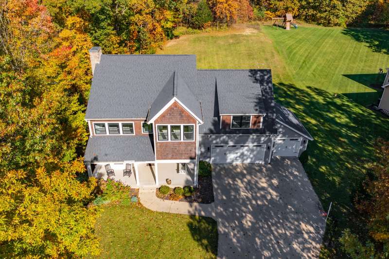 Seller offering $10,000 credit towards closing costs!!! Welcome to a truly exceptional residence offering over 5,000 square feet of finished living space, set on a picturesque acre lot designed for privacy, comfort, and timeless appeal. This is not your typical cookie-cutter home - every detail has been thoughtfully crafted for style and distinction. Step inside to discover rich hardwood floors, elegant coffered ceilings, and architectural touches that set this home apart. The heart of the home is the stunning chef's kitchen, beautifully appointed with high-end finishes, custom cabinetry, and generous workspace - ideal for entertaining and everyday living. Each of the four spacious bedrooms features a private ensuite, providing both luxury and convenience for family and guests. The primary suite is a true sanctuary, with lavish proportions, in a spa-inspired bathroom. Unwind in the dedicated hot tub room, or enjoy the outdoors year-round from the covered front and back porches, ideal for morning coffee or evening gatherings. The home's exterior shake detailing adds warmth and curb appeal, further emphasizing its one-of-a-kind design. If you're seeking a refined, well-designed custom home with character and quality throughout, this property is a must-see.