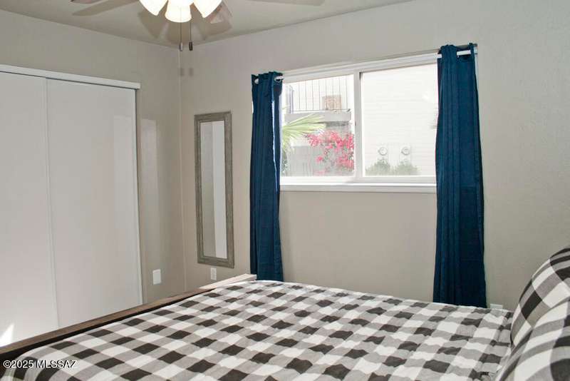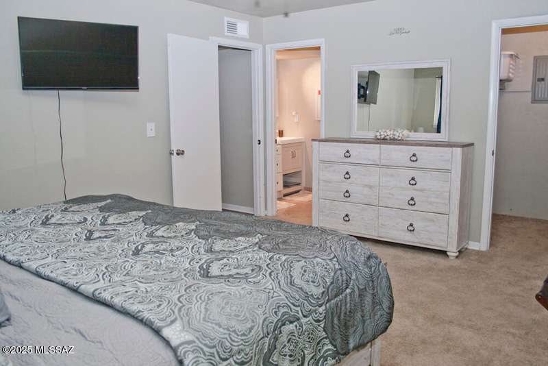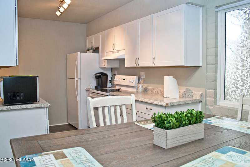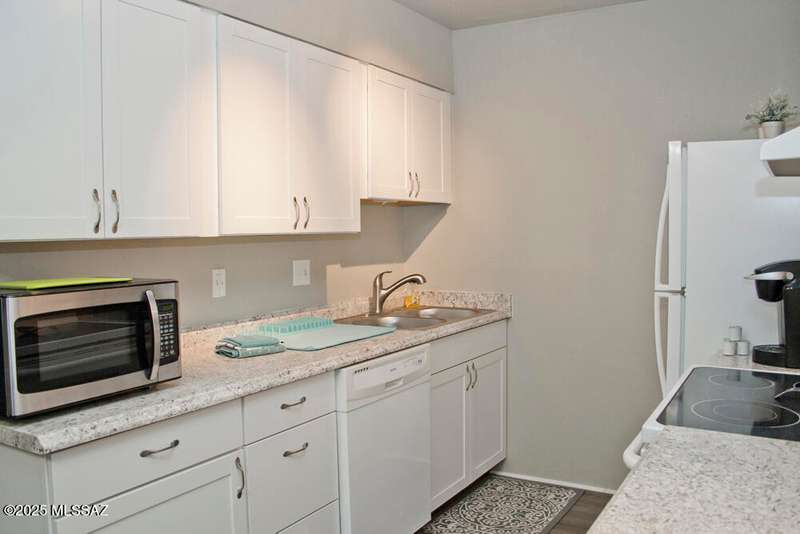 Enjoy the LARGEST condo in the complex at 1,420 square feet of updated living space! One of the harder to find 3 bedroom and 2 bathroom condos in the area which is spacious, move-in ready, and contemporary in style. The very large third bedroom with a separate entrance is currently set up as a second living space but could be used for a wide variety of purposes. Previous updates include newer flooring, paint, kitchen cabinets, and remodeled bathrooms. You'll appreciate the corner unit and ground level property that's located just a few steps from the community pool & spa. All of this and a fantastic east side location nearby to shopping, parks, The Loop, and so much more. Furnishings are available for purchase on a separate bill of sale.