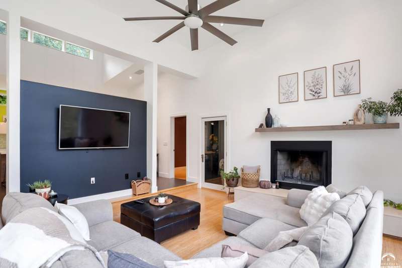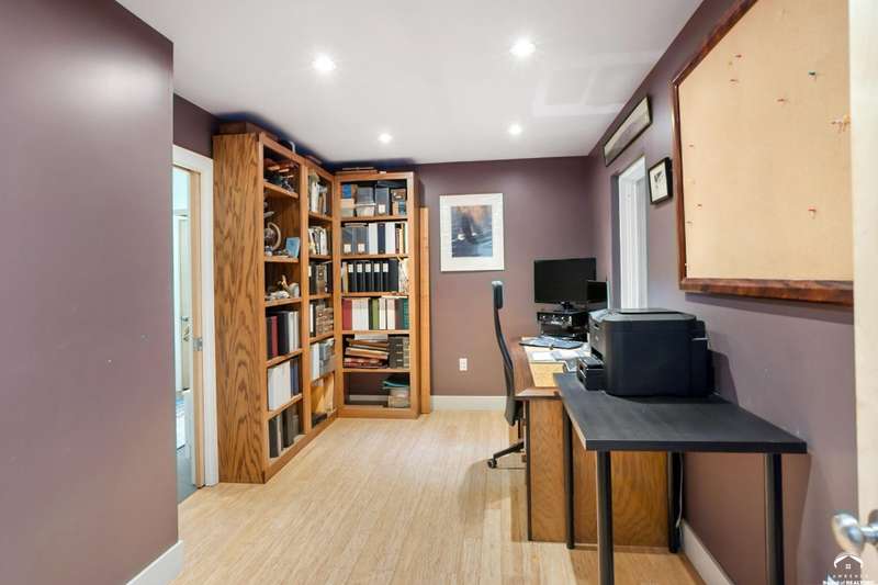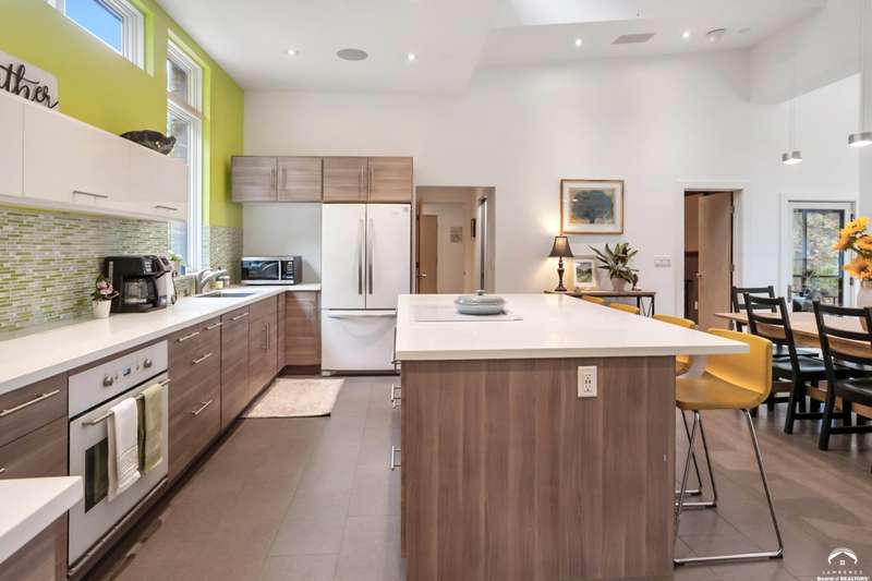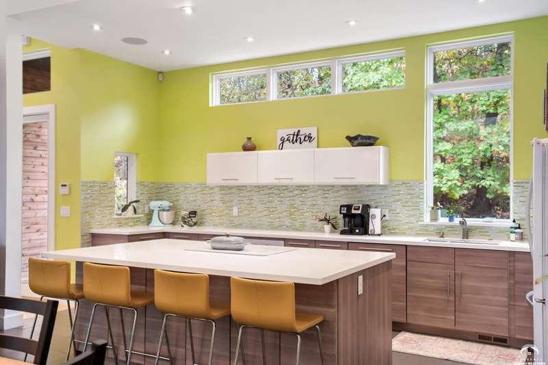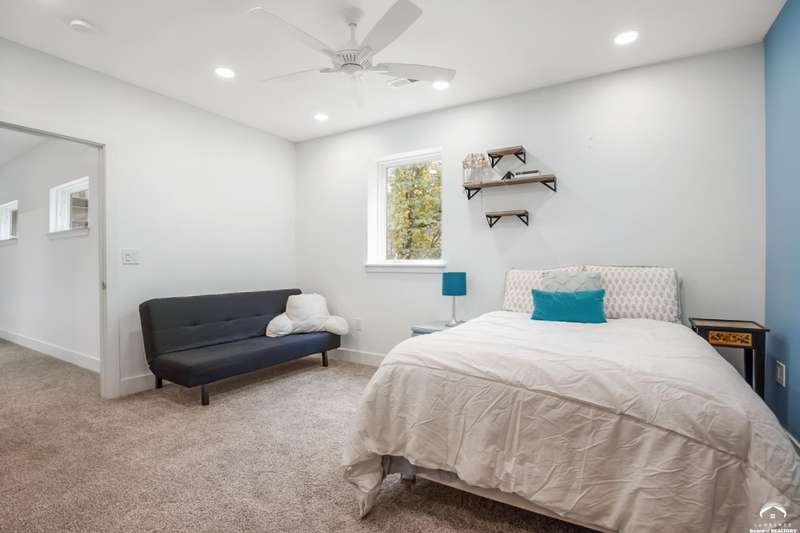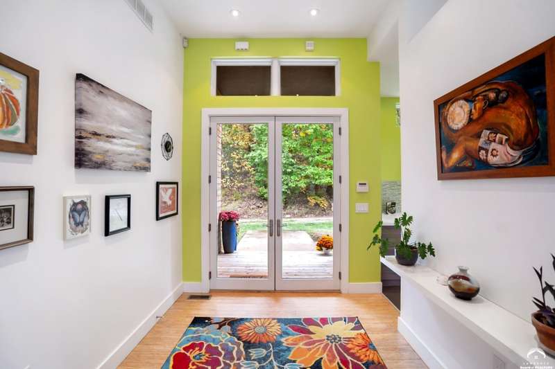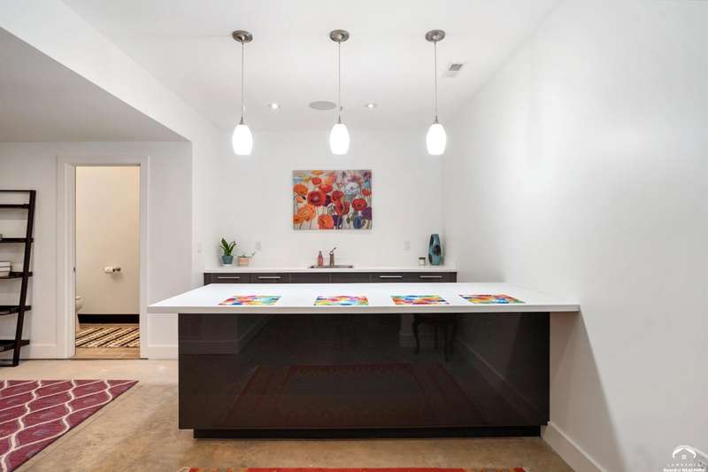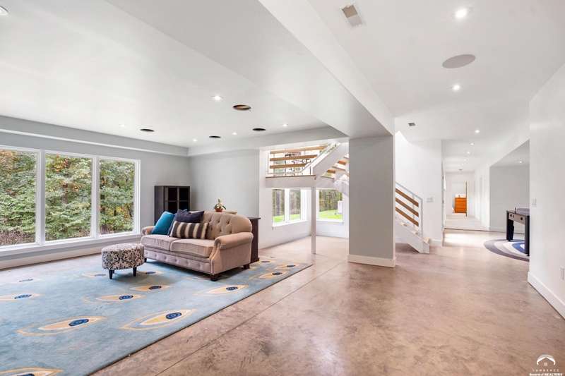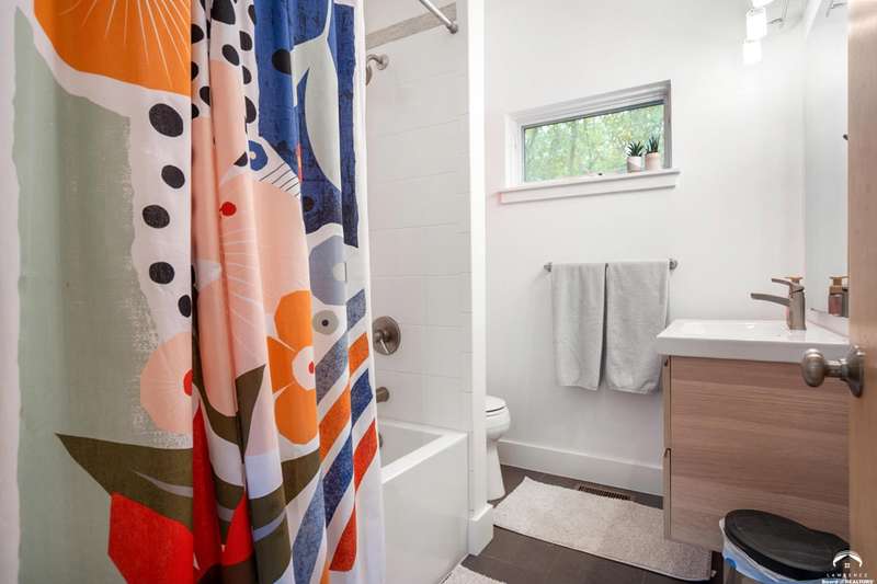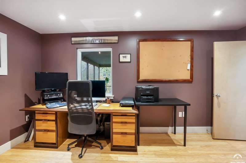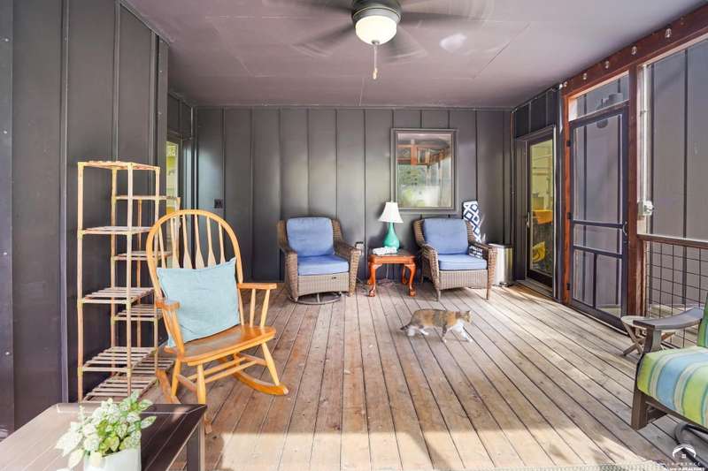 Nestled in to a lovely wooded hillside, close to Tonganoxie yet secluded and private, this lovely contemporary home sits on it's own 10 acres. Modest seeming as you approach, entering the home brings an unexpected sense of openness and airy light. With soaring windows looking out over the wildlife filled site, you will be taken by the beauty of both the home and the property. With a welcoming foyer as your starting point, you'll move through the open kitchen and dining room, enjoying the proximity to the living room, and the access to the office and the screened porch. Down the well lit hallway are the generous bedrooms, with the whole first floor being bathed in light through the large window banks. Down the stairs to the finished basement leads you to more highly usable living area, with a large rec-room, game nook, large wet bar and more. The fourth conforming bedroom anchors one end of the basement, with it's private bath, and there's a non-conforming Craft room/ office as well. This lovely home and property are the perfect landing place for your next adventure, be sure to schedule a viewing today!