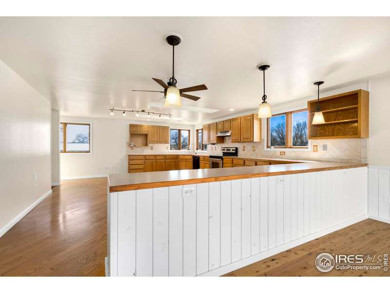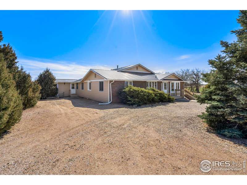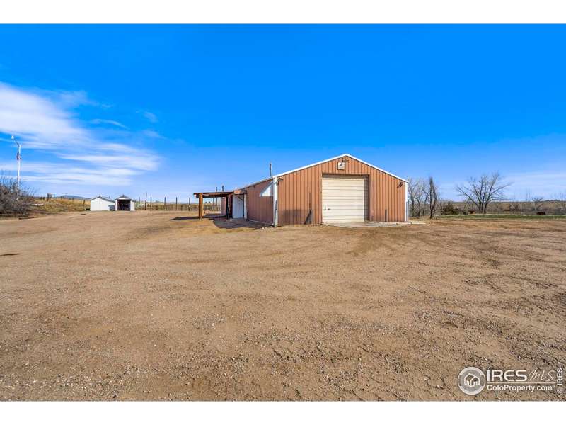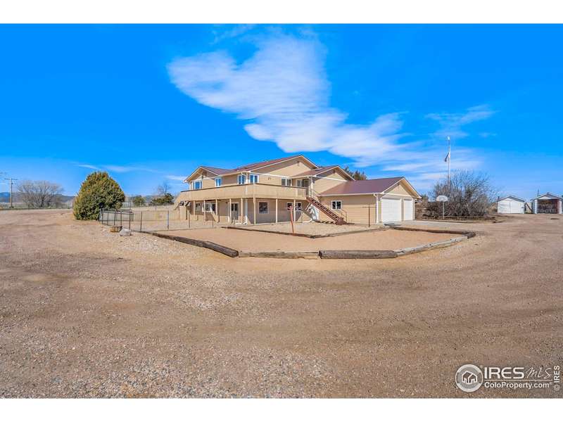 Backing to a privately owned meadow, this beautiful 3953 sq. ft. ranch on 35 acres with a finished walk out basement has 4 bedrooms and 5 baths. The interior and exterior of the home have been freshly painted. Warm wood floors accent the main level with a country size kitchen that has a breakfast bar and a walk-in pantry. The spacious great room has a farmhouse vibe with painted wood wainscoting and beautiful views of the mountains to the west. A main level primary suite has a soaking tub and walk-in shower along with new flooring. The finished walk-out basement has a bedroom with a private 3/4 bath, large rec room that has a new bay window, new luxury wood plank flooring throughout, a mud room with a 1/2 bath conveniently located by the entrance to the oversized 3 car garage, and two large storage rooms with shelving. The home is serviced by Northern Colorado water, Poudre Valley REA electric and propane. The home has a geo-thermal heating system for energy efficient heat and hot water. Enjoy summer evenings on the large wood deck with a walkway that leads to the front of the home. Work on your projects or store your equipment in the 3100 sq.ft. insulated shop with a wood heating system, propane heater, 220V outlet and water service with a 10-gallon hot water heater. Two sheds add additional storage. Bring your horses and enjoy a 200' x 400' roping arena, fenced pastures with 3 auto-waterers, and 3 water hydrants. There is no HOA or Metro District. Private, country location only 15 minutes to Old Town Fort Collins. Easy to show!