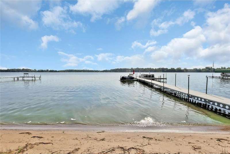 Enjoy lake front sunrises with 80' of sandy beach in a beautifully renovated and cared-for home. Spacious kitchen , heated in-ground pool (if the lake is a little cool). New windows at lakeside, expansive full-width deck with level screen porch , mature trees at property lines providing exceptional privacy. Full recreational South Center Lake connects to North Center Lake at Highway 8 bridge.