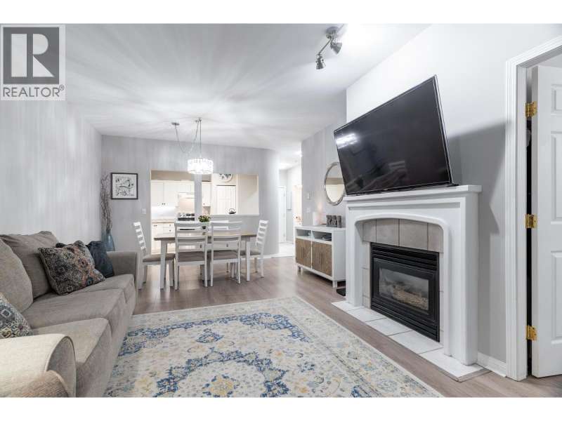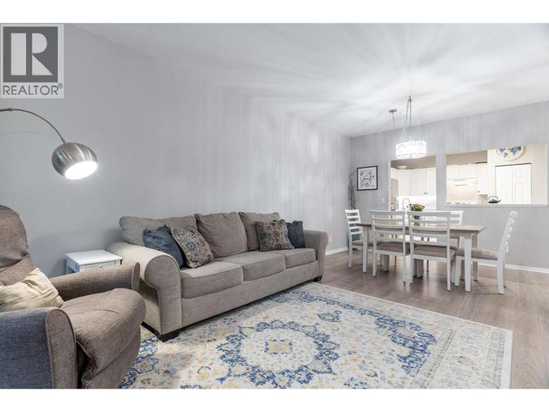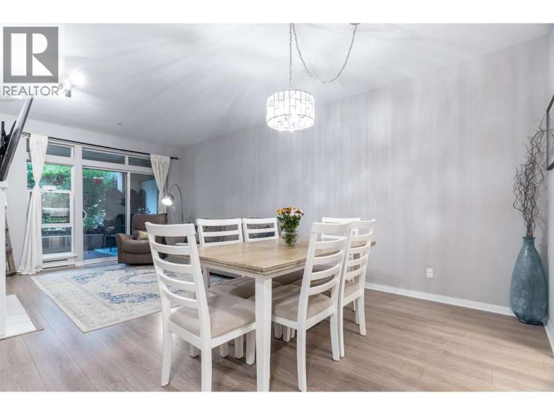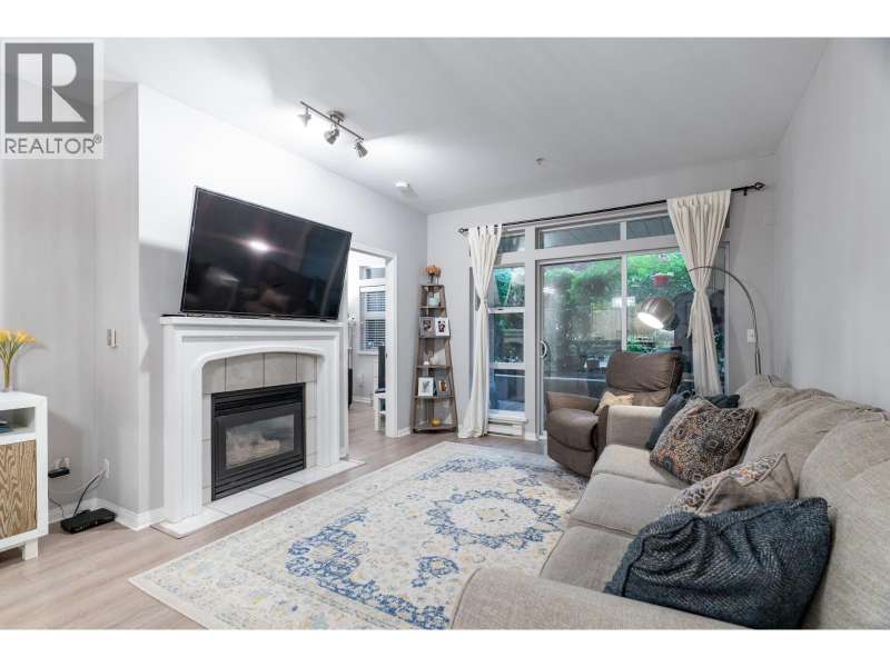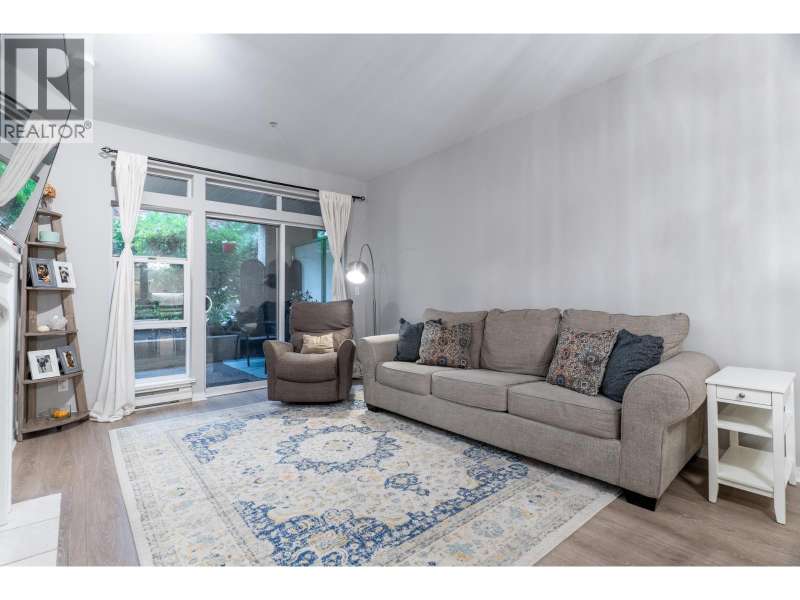 Step inside this spacious 2-bedroom ground-floor home at The Heritage Grand, where well-planned living space is paired with 9-foot ceilings and large windows that bring in plenty of light. The laminate flooring throughout the main living areas and bedrooms gives the home a warm, cohesive feel, while the kitchen features stainless steel appliances, making daily life easy and functional. The living and dining spaces open onto a large covered patio, perfect for morning coffee, year-round BBQs, or just a quiet spot to unwind. You´re tucked into one of Port Moody´s most walkable neighbourhoods, just steps to shops, Rocky Point Park, scenic trails, and Skytrain The building is fully rain-screened, well maintained, and allows two pets. Bonus: two parking stalls Included. (id:58403)