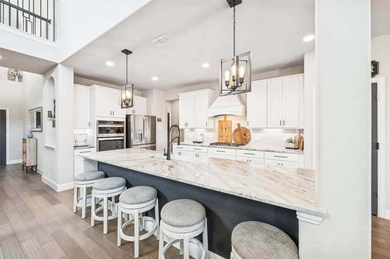 Welcome to 11852 Toppell Trail, a stunning minimal neighbor home in the desirable Wellington. This residence combines modern upgrades, energy efficiency, and smart home technology with a thoughtful open-concept design. From the moment you arrive, the brick and stone faade, along with the covered front porch, creates exceptional curb appeal. Inside, the home features high-end finishes and upgrades. Hardwood floors flow seamlessly throughout, while the expansive great room connects effortlessly to the kitchen and dining areas, making entertaining a breeze. The gourmet kitchen features a farm sink, gas cooktop, stainless steel appliances, and a vast island with seating. Every detail was designed with convenience in mind, including smart switches and lighting allowing you to set the perfect ambiance with the touch of a button or voice control.The primary suite offers a private retreat with a spa-like ensuite outfitted with dual sinks and a massive walk-in shower. Upstairs, a versatile loft and two secondary bedrooms share a well-appointed bathroom, while the dedicated media room has been customized for the ultimate theater experience with tiered seating. Additional thoughtful details include a main-floor office, oversized storage, and whole-home audio, allowing each room to enjoy music independently. Outdoor living is just as impressive. The covered patio creates an inviting space for relaxation, while the backyard features a golf practice area and green space for recreation. Solar panels further enhance the homes energy efficiency, helping to reduce utility costs and environmental impact. Living in Wellington means access to incredible neighborhood amenities, including a resort-style pool, clubhouse, playgrounds, and trails. With its blend of modern technology, stylish upgrades, solar-powered efficiency, and community conveniences, this is a one-of-a-kind home designed for comfort, entertainment, and everyday enjoyment.