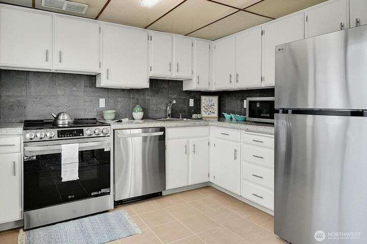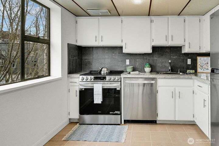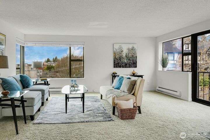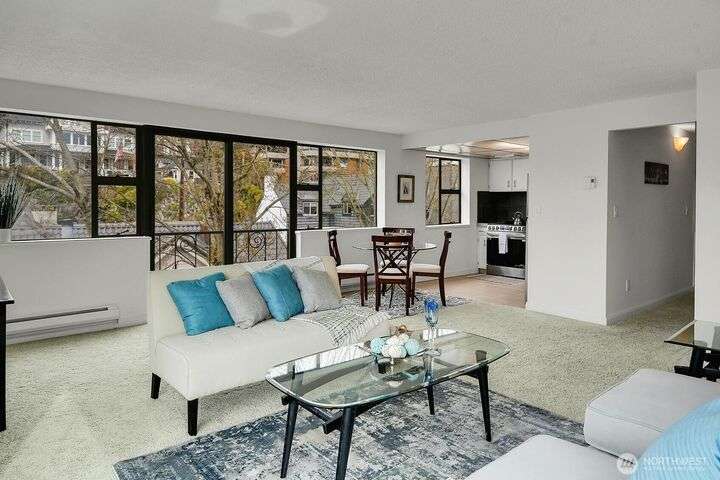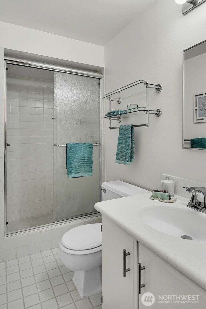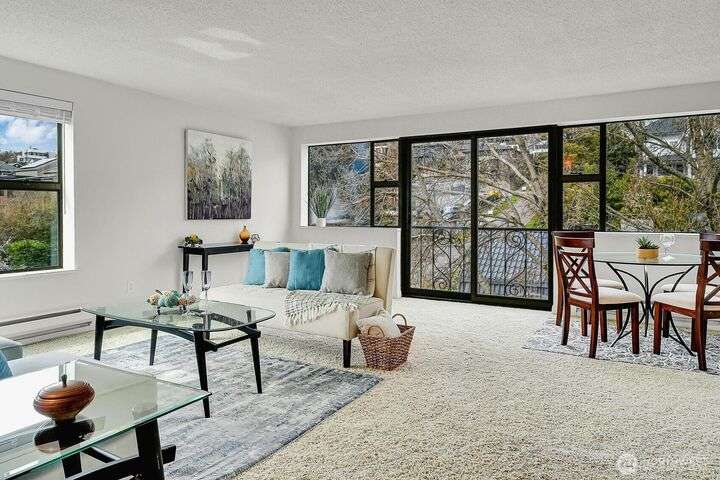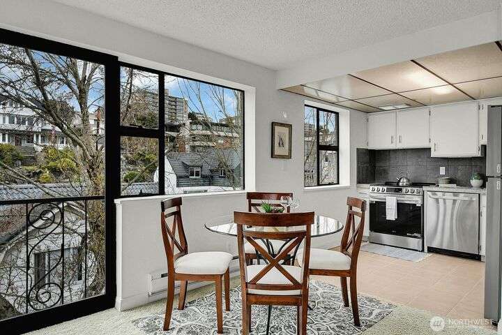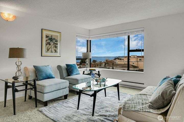 Top floor corner view unit with incredible natural light throughout! Enjoy amazing views of Elliott Bay, Puget Sound & beyond! Great 2 bedroom, 1.75 bath residence features new stainless steel appliances, new sinks/vanities in both bathrooms, tons of storage/closet space & fresh paint throughout! Small, quiet building with a lovely common area yard. Professionally managed! Great HOA! Convenient to transportation, shopping, restaurants! 4 guest parking spaces are available. 1 storage space plus 1 deeded parking space are also included.