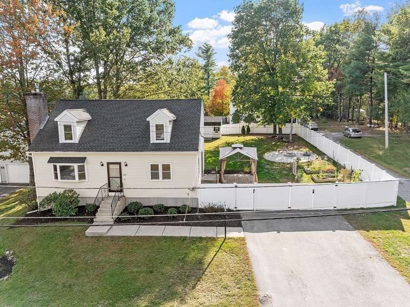 Charming Cape style home with 3bed, 2bath, and a full dormer in rear. Two very large bedrooms and a full bathroom on the second floor. One of the second floor bedrooms has 2 full size closets. The kitchen has granite countertops, under cabinet lighting and an island that is great for entertaining guests. Hardwood floors on the 1st floor. Get cozy and snuggle up by the gas fireplace in the living room that is temp controlled by remote. Sit, relax, and enjoy the patio, under the gazebo, or by the firepit. The fully fenced in yard gives you great privacy. Windows professionally installed in 2022 and have a transferable Lifetime Warranty. Furnace installed 2011, Water heater 2017, Roof 2014. Home is .6 miles (approx.) to Lake Samoset and per association, membership to Lake Samoset may be purchased for use of the beach.