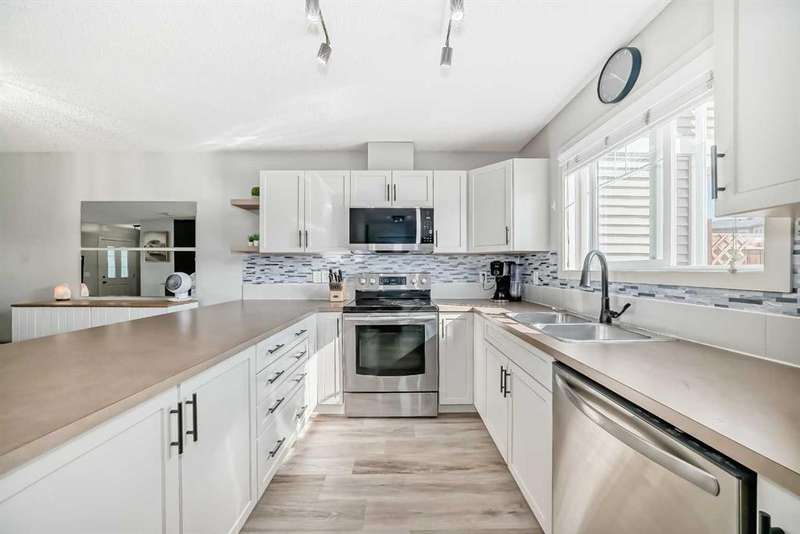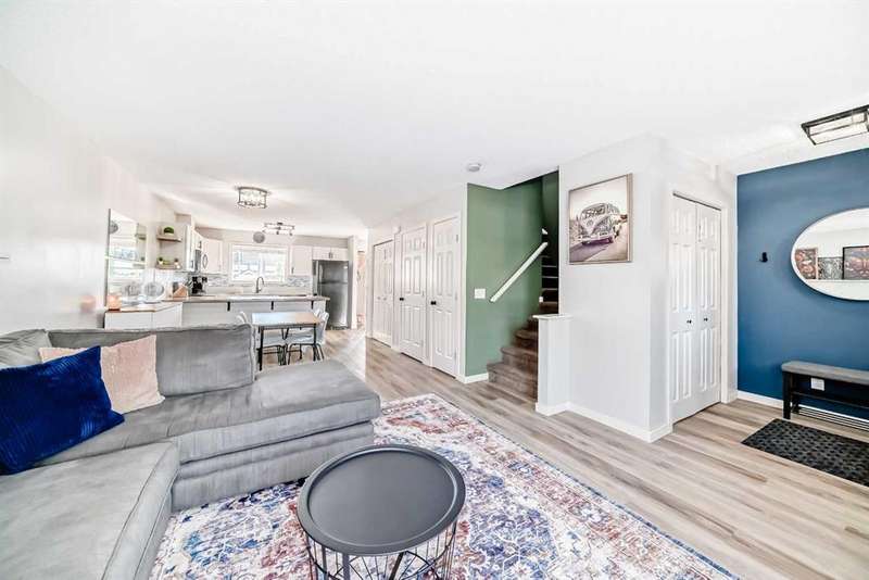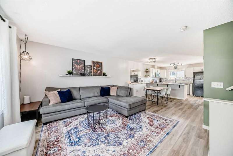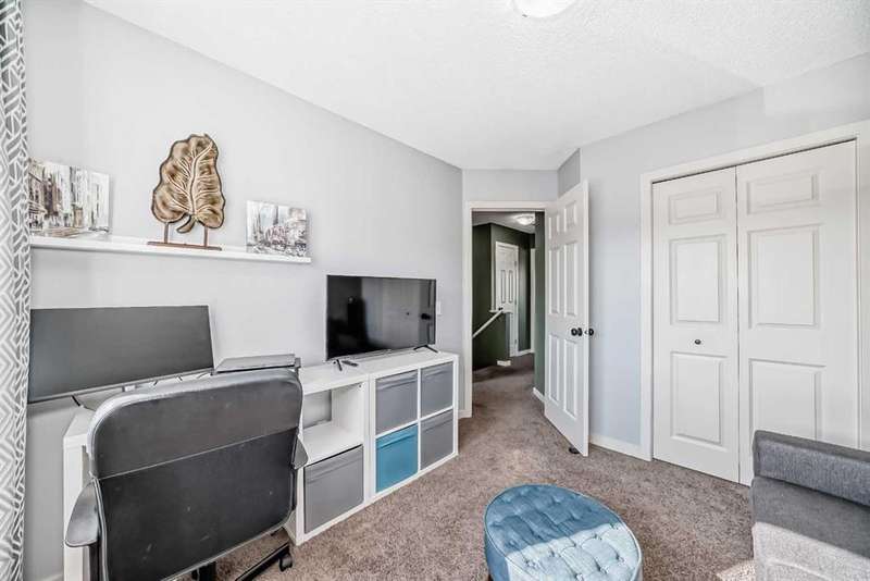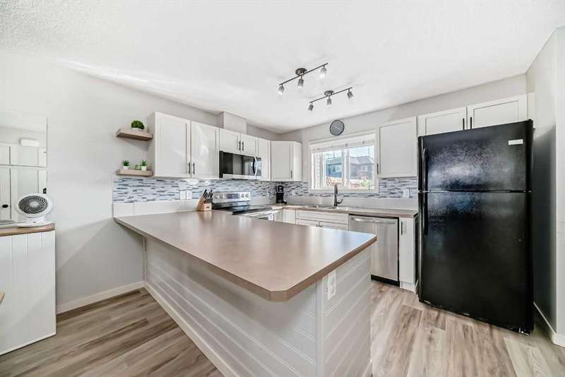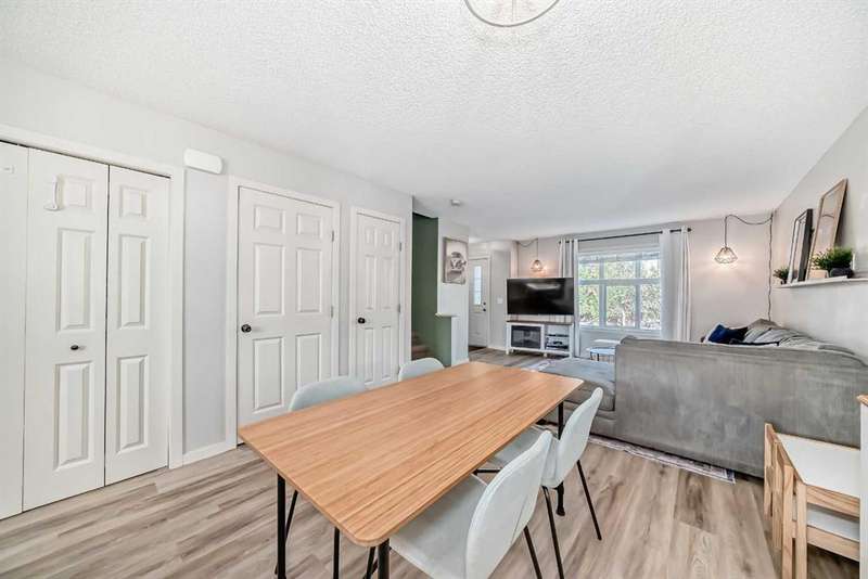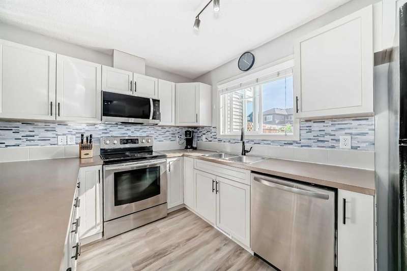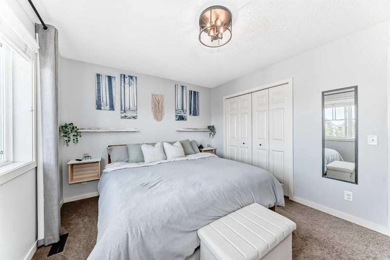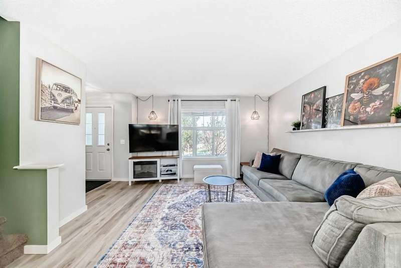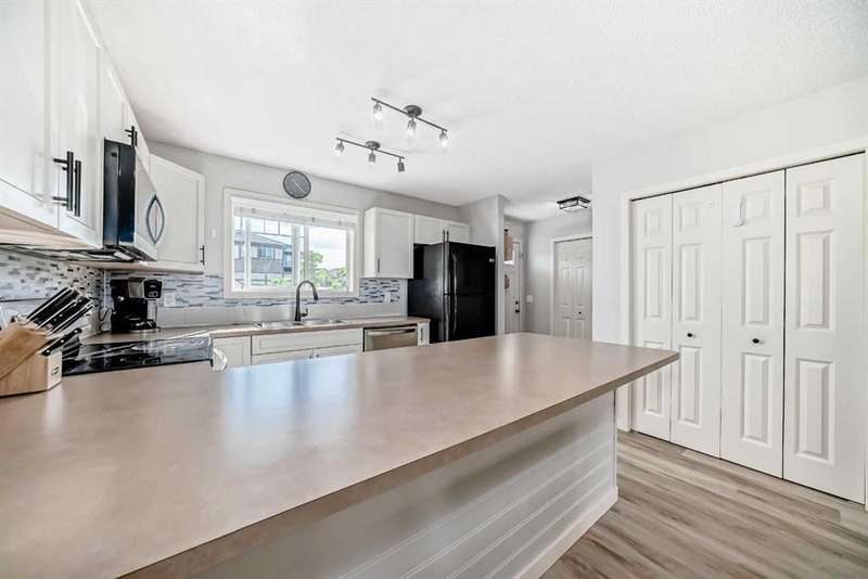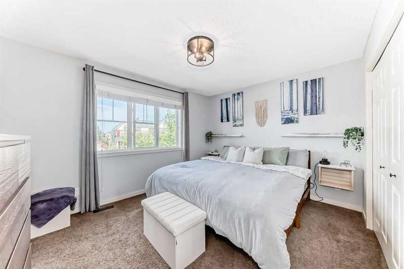 This stunning two-story townhome presents an incredible opportunity for ownership without the hassle of condo fees! Move-in ready and meticulously maintained, this home is ideal for those who value comfort and convenience. As you step inside, you'll find an open-concept floorplan that seamlessly blends the living and dining areas, creating a welcoming space for both relaxation and entertaining. The well-appointed kitchen features a breakfast bar, ample counter space, and abundant cabinetry—perfect for culinary enthusiasts. The second floor offers a luxurious retreat with a bright, west-facing master suite that’s spacious enough for a king-sized bed. Enjoy the luxury of a large closet and a private 4-piece ensuite bath. Two additional generously-sized bedrooms and another 4-piece bathroom complete this level, ensuring plenty of space for family or guests. The unfinished basement is a blank canvas for your imagination, featuring a laundry area with a washer and dryer included, and roughed-in plumbing for a future bathroom. Imagine the possibilities for additional living space or a personalized retreat. Your private backyard is perfect for evening relaxation and barbecues on the patio, and there’s a rear parking pad with potential for a garage, providing convenience and security for your vehicles. Situated close to a K-8 school and within walking distance to St. Timothy School, this home is ideal for families. Enjoy the nearby Sunset Ridge park, complete with a picturesque pond, playground, and walking paths—perfect for outdoor enthusiasts. This property is a fantastic starter home for a young family or single professional. Don’t miss the chance to call this beautiful townhome your own.