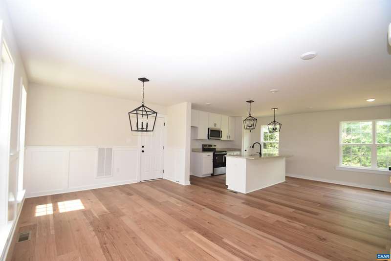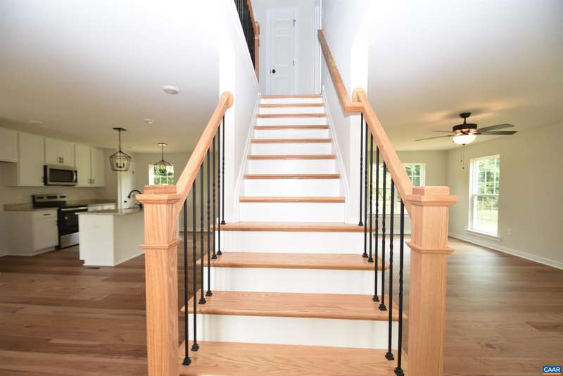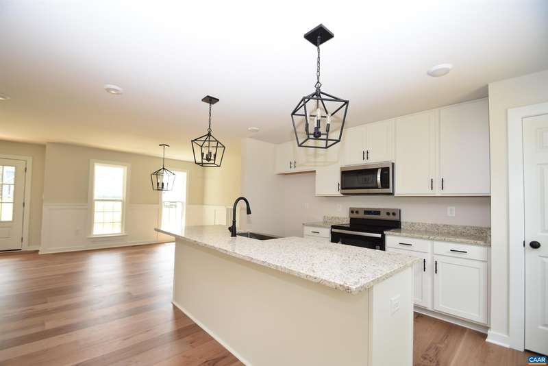 IMMEDIATE OCCUPANCY! NOW COMPLETE! Ask about $10,000 in seller paid closing costs! The Ross model with upgrades galore including FREE ENGINEERED HARDWOOD floors on the main level! The welcoming front porch boasts a French door with 3/4 glass, vinyl porch railings, black gutters and windows with wide window trim, stained columns, shake siding in section A, dormer, and a side load garage with opener. Interior upgrades include black interior hardware throughout, great room with extra windows, LED lights, and ceiling fan, dining room with craftsman trim package, upgraded kitchen with stainless appliances and farmhouse sink, granite counters, 2x8 island with overhang and pendant lights, 42" Tier 2 cabinets, breakfast nook leading to the 10x14 deck. The oak stairs lead you up to the primary with ceiling fan, trim box package, extra window, leading to the ensuite bath with 5' tile shower and flooring, transom window over shower, and double bowl vanity with wave sinks. Adult height toilets in primary and half bath, LED overhead lights in other 3 bedrooms, pull down attic stairs for storage and convenient laundry finish out the second floor. No HOA or WATER or SEWER Bills.