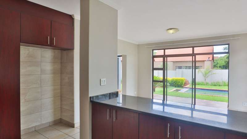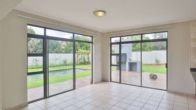 Welcome to this stunning 4-bedroom, double-story home located in the prestigious Leloko Lifestyle Estate. This property offers a perfect blend of comfort, and privacy, making it an ideal choice for families seeking a serene and secure environment. Upon entering, you’re greeted by a spacious living area that is bathed in natural light, creating a warm and inviting atmosphere. The open-plan design seamlessly connects the lounge, dining, and kitchen, offering a perfect space for entertaining guests or spending quality time with family. The well-appointed kitchen features modern finishes, ample storage, and an island counter for added convenience. Upstairs, you’ll find four generously sized bedrooms, including a master suite with an en-suite bathroom. Each bedroom offers built-in wardrobes, ensuring plenty of storage space for your belongings. The bathrooms are sleek and contemporary, designed with relaxation in mind. Step outside to your very own private paradise. The expansive yard includes a stunning swimming pool, ideal for those hot summer days. The well-maintained garden provides ample space for children to play, pets to roam, or even for creating a peaceful retreat. Whether you envision hosting family gatherings, relaxing by the pool, or simply enjoying the tranquility of your surroundings, this home offers it all. Leloko Lifestyle Estate is a secure and sought-after community, offering peace of mind with 24-hour security. With its prime location and a wide range of amenities, this home provides the ideal setting for a comfortable and fulfilling lifestyle.