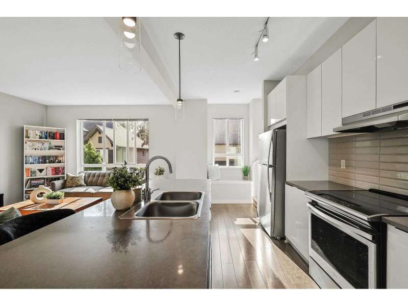 Highly Desirable Bristol Heights! Welcome to this beautifully maintained 3-bedroom, 3-bathroom townhome by Polygon, located in the sought-after Westridge neighbourhood. This bright and spacious home features an open-concept layout with large windows, modern finishes, and an XL quartz kitchen island-perfect for entertaining. Enjoy the comfort of a spa-inspired ensuite with a double vanity, a smart thermostat, convenient upstairs laundry, and a side-by-side double garage. Step outside to a fully fenced yard and a private patio. Residents have exclusive access to Club West, offering resort-style amenities including a pool, hot tub, fitness centre, theatre, dog wash, floor hockey, billiards, playground, guest suite... Close to Discovery Trail, High Street + easy access to HWY1. (id:58403)