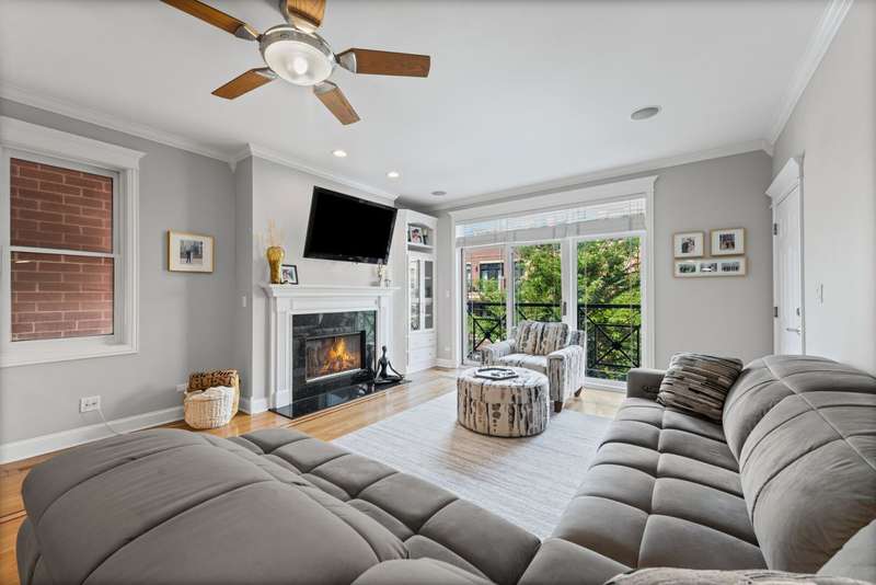 This wonderful & meticulously maintained condo offers 1,800 square feet of living space situated between West Lakeview & Roscoe Village. With a gorgeous primary suite and 2 other generously sized bedrooms as well an oversized kitchen/dining and living room, the spaciousness of this home allows you to settle in and live your best life. The living room has gorgeous built in shelving, and a gas fireplace that goes on with just a switch. Cozy up this fall in your new home, and enjoy all this neighborhood has to offer. Incredible closets in every room, a dedicated laundry room with brand new side by side washer/dryer, 1 garage spot and additional storage in the garage. The large and private deck off the back of unit is accessible by the hallway, allowing you to maintain the primary suite as your private oasis.