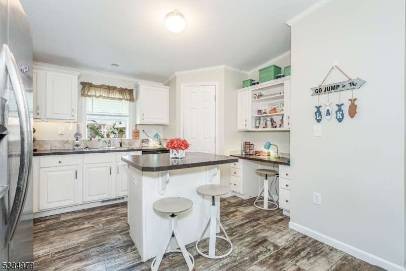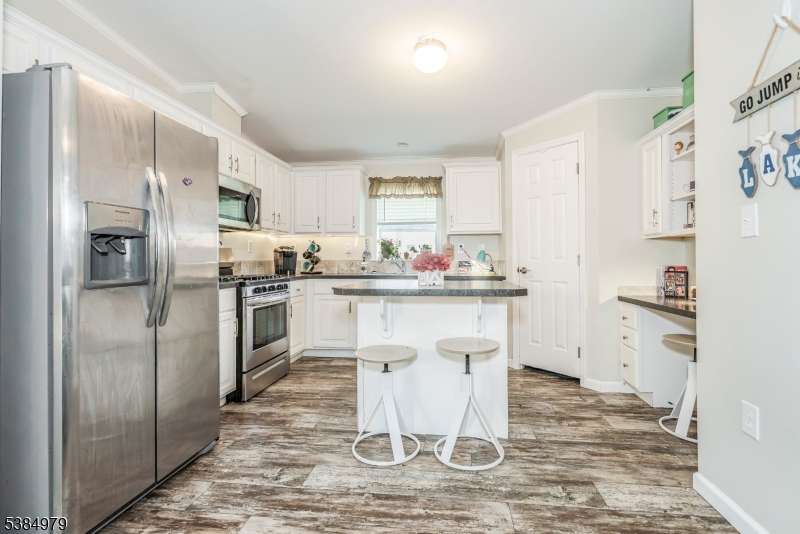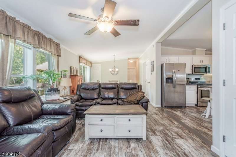 Turn Key-Main Level Lakefront Living - Title Ownership - Land Lease - Lakefront Setting - Central Air-Living Room-Kitchen with large pantry -Two Bedrooms - Two Full Bathrooms- Front Porch - Large Rear Deck - 2012 Pontoon Boat Included - Level Yard - Propane Gas - Shed - Public Water - Snow Removal - Garbage Included - Residents must be approved by management prior to moving to the lease property. Being Sold As is.