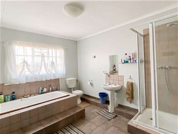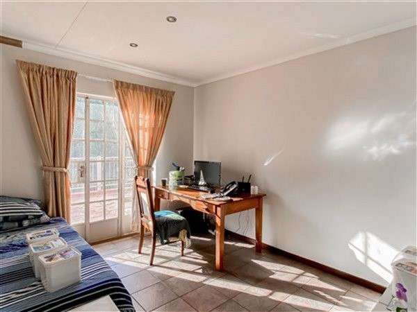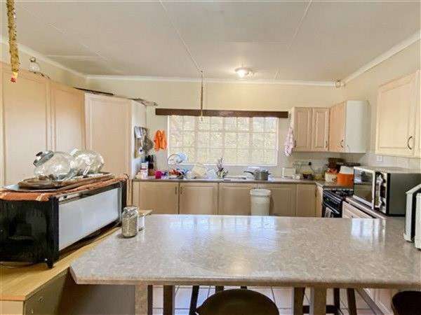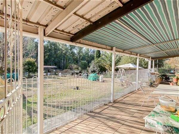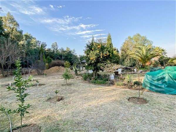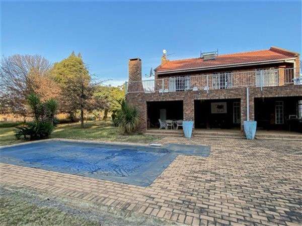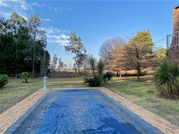For the closeknit family, a 300 sq. meter double story very neat 4-bedroom, 3-bathroom with kitchen and dining room and a lounge with fireplace leading to a patio (stoep) with a built-in braai next to a sparkling pool nestled in a treed garden. Also, a laundry and double garage. Next to the main house is a two-bedroom one-bathroom cottage, 300 sq meters, with open plan living with fireplace for those cold winters and double garage and patio. All buildings fenced with security gates. Whole property is fenced with devil's fork fencing. A strong borehole with tank stand and water good enough for bottling. To complete the picture there is a 5 KW solar system with ten solar panels and Lithium-Ion battery to cope with load shedding. The building is on the back of the property, leaving six hectares of level land ideal for horses or soya production. Easy access to main roads leading to Rayton, OR Tambo or Pretoria.