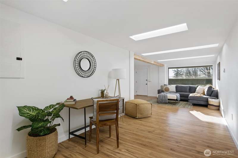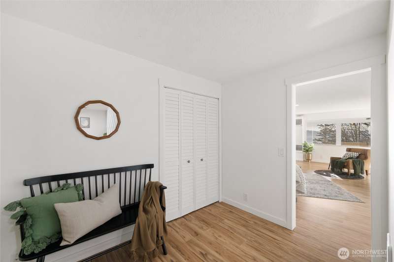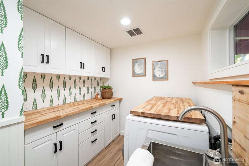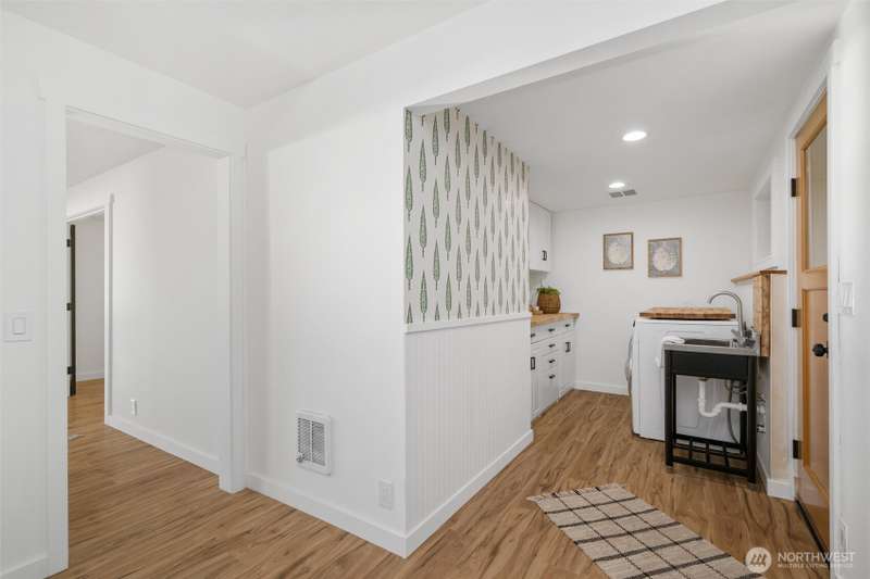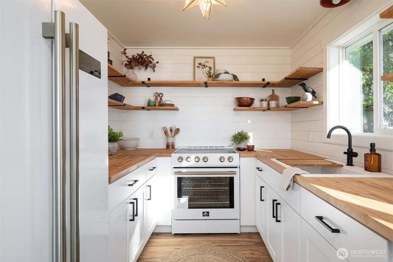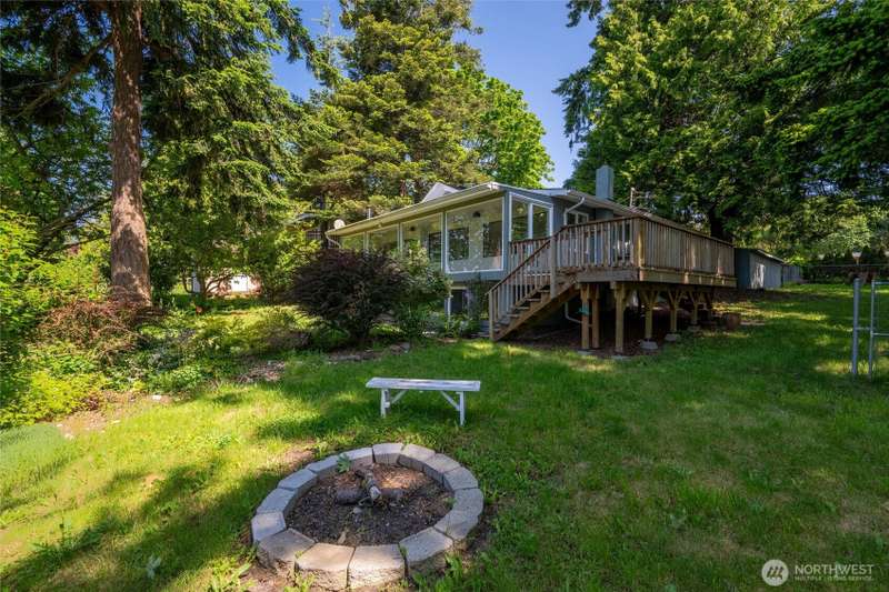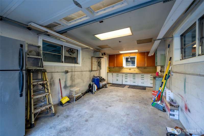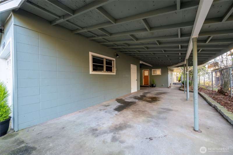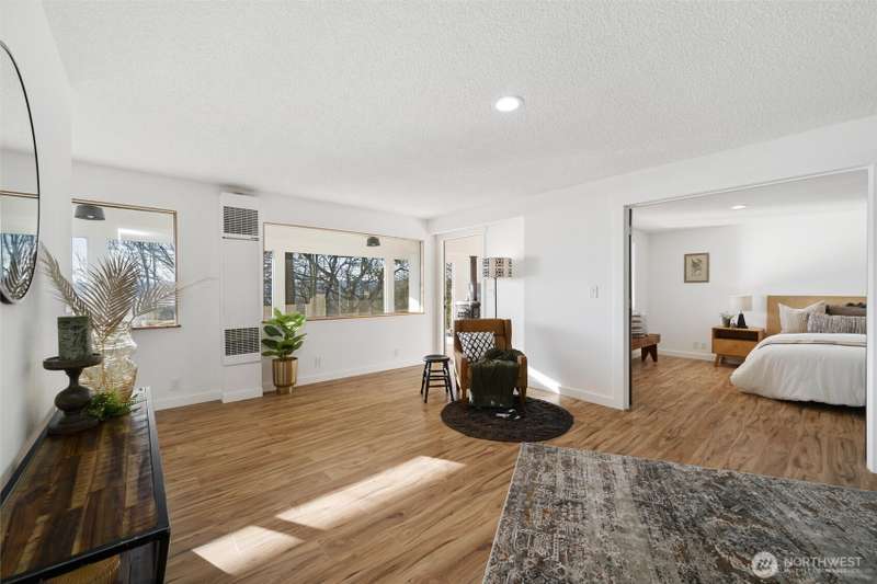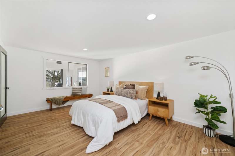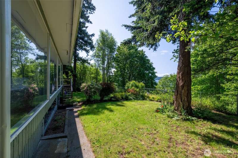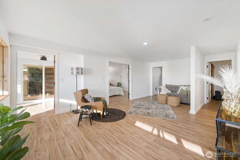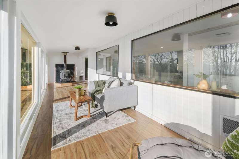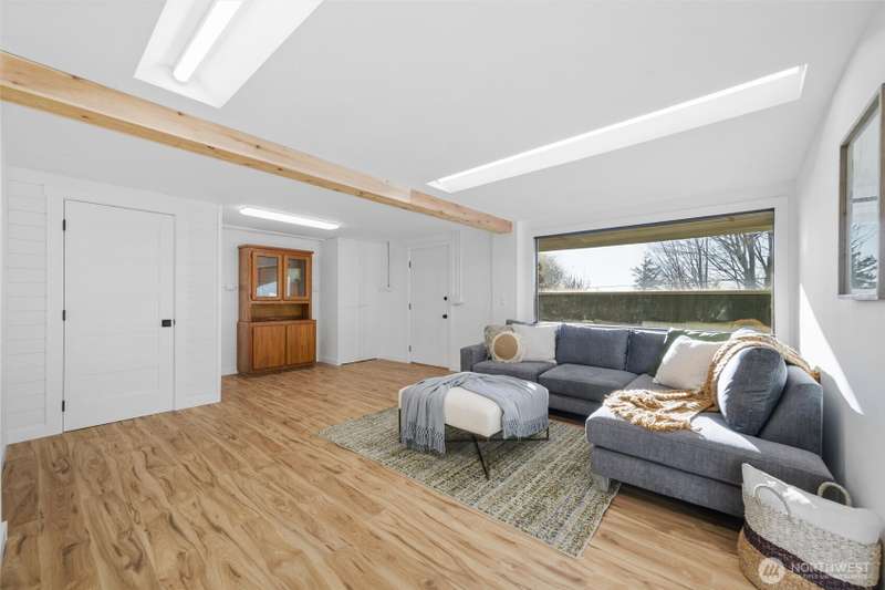 Welcome to Gooseberry Pt on deeded land that is NOT leased. Bring your kayak or SUP. Complete interior renovation with all new floors, paint, kitchen, bath, fixtures, and appliances! Enjoy the wide southwesterly water view from most of the main level, and soak in the sun from the sunroom with walls of windows. Views, space and more on this great double lot with extra parking, detached garage, two carports, and shop space. Even room for an RV! Flexible layout with a large primary bedroom guarded by French doors, so much to love in your next home! Potential for a separate living space with its own entrance. Don’t miss the chance for a like-new home with many possibilities - 20 min scenic drive to Bellingham!